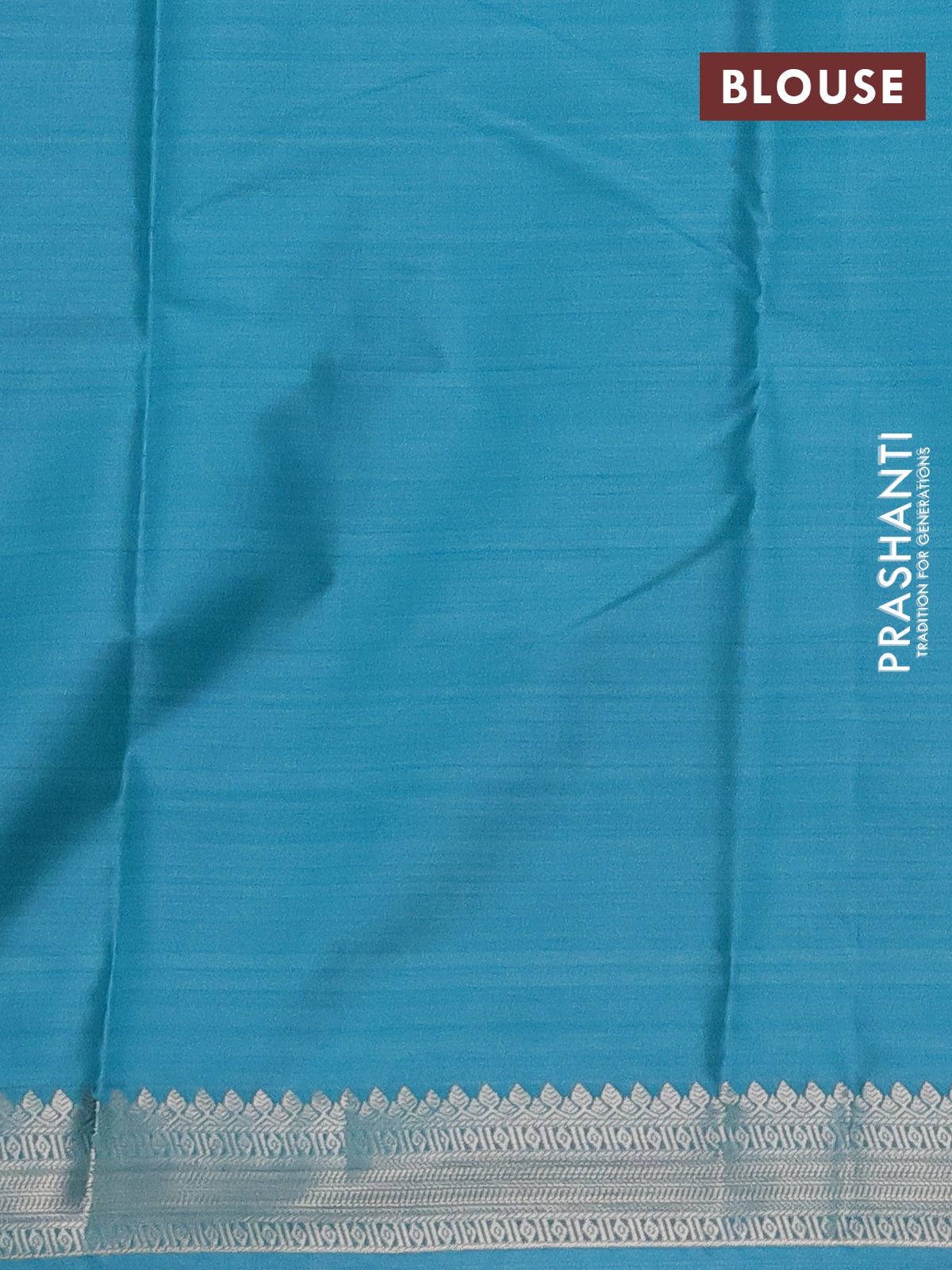 Bangalori semi silk saree teal blue with allover elephant ikat butta weaves and zari woven border