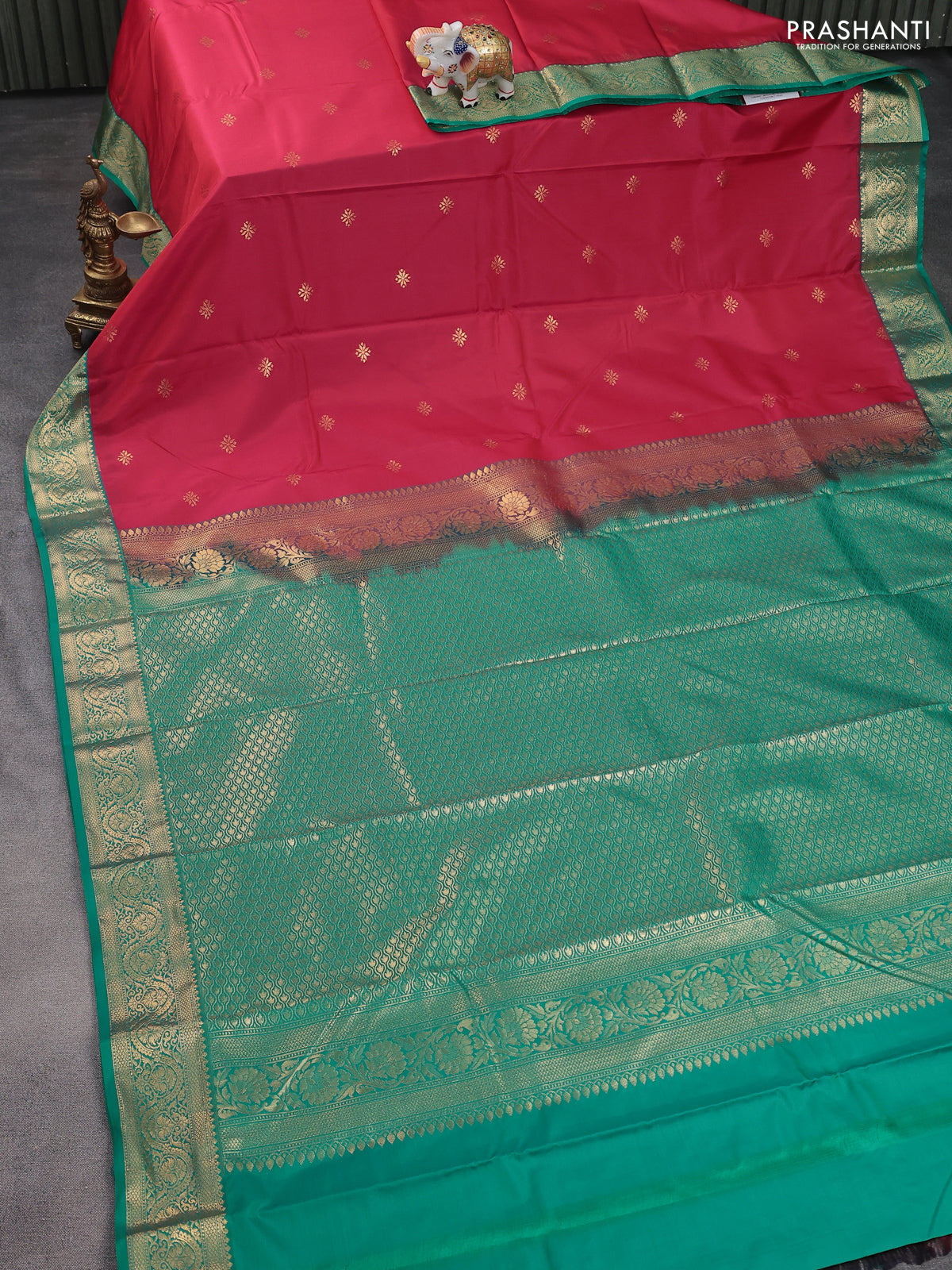 Bangalori silk saree reddish pink and green with zari woven buttas and zari woven border