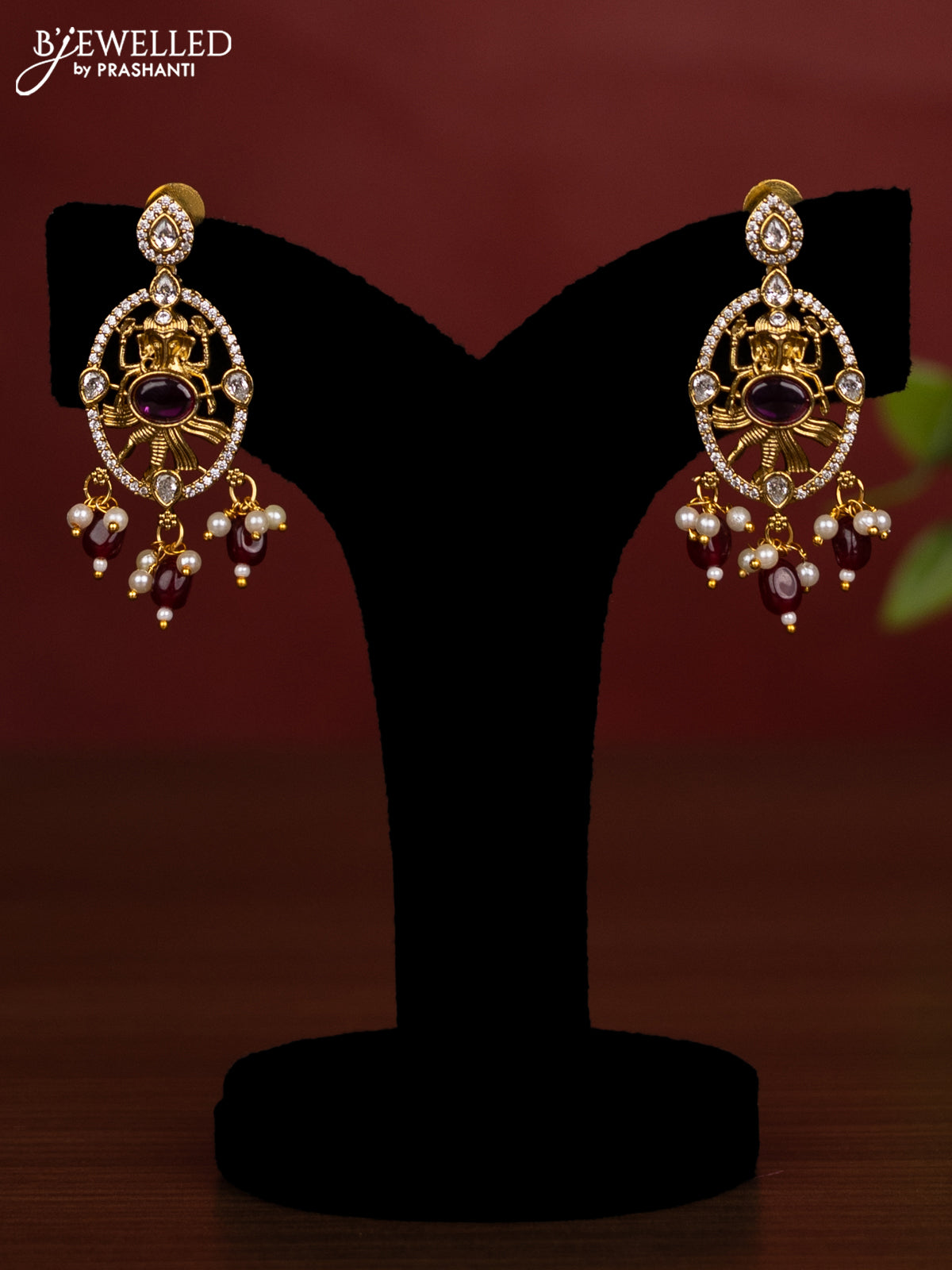 Beaded double layer maroon necklace ganesha pendant with ruby & cz stones and pearl & beads hanging in victorian finish