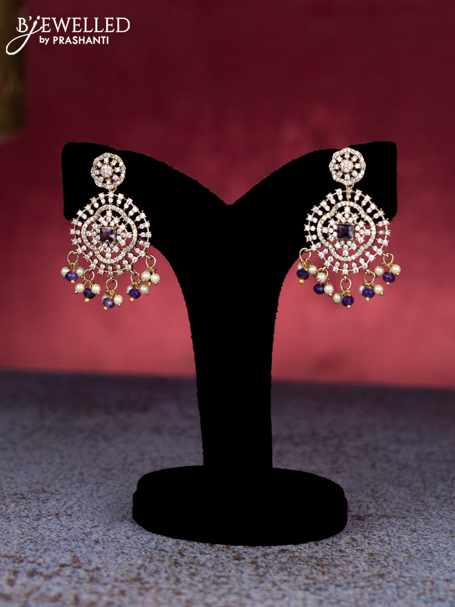 Beaded triple layer violet necklace with cz stones and pearl & beads hangings in victorian finish