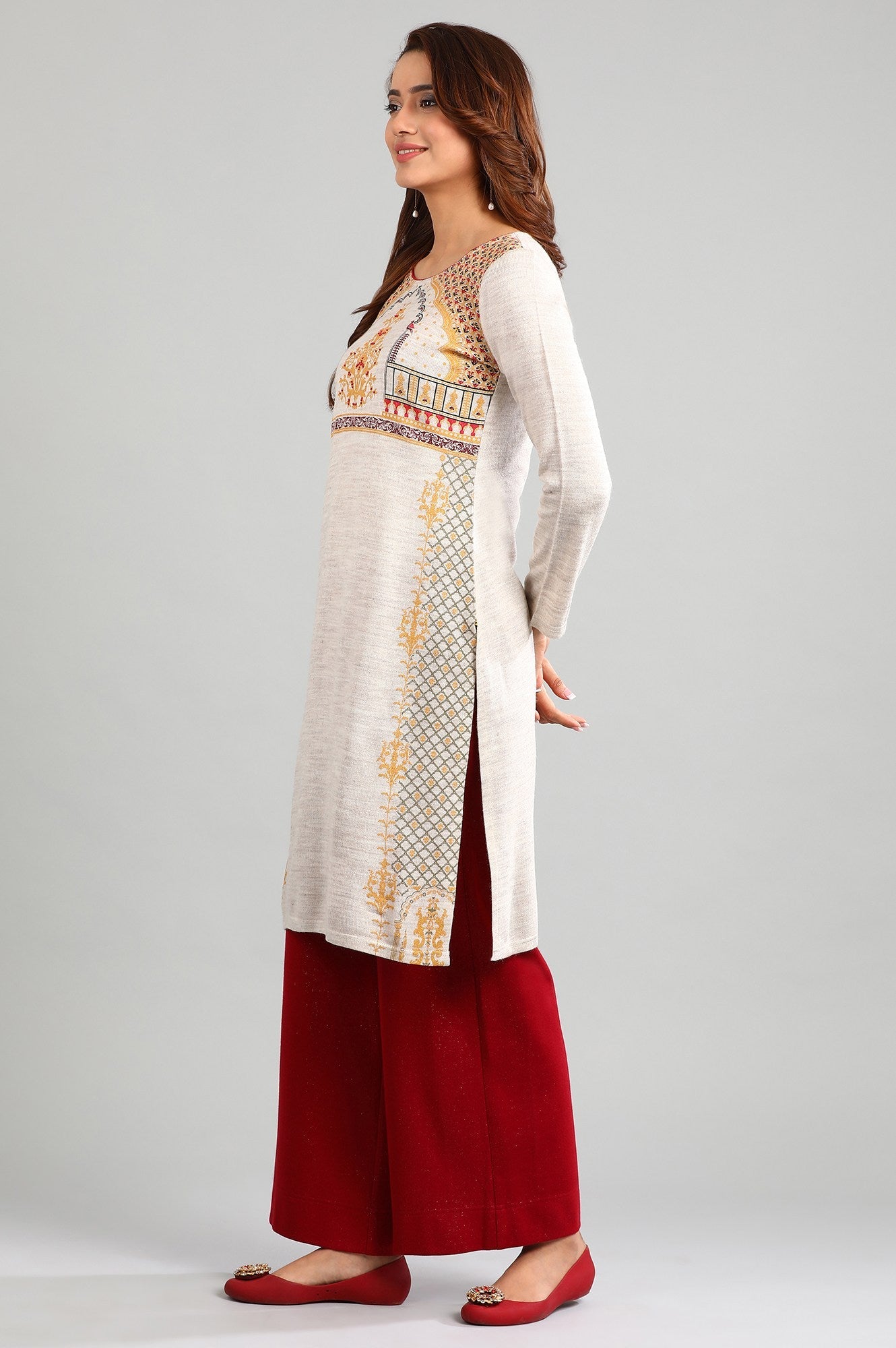Beige Round Neck Winter kurta