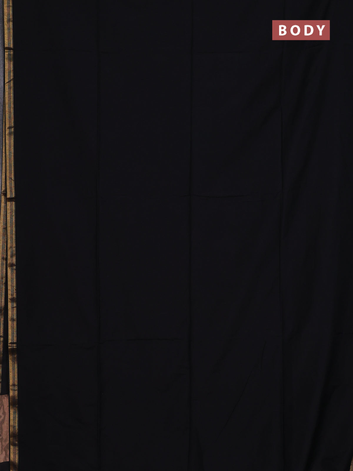 Bengal soft cotton saree black and blue with plain body and zari woven border