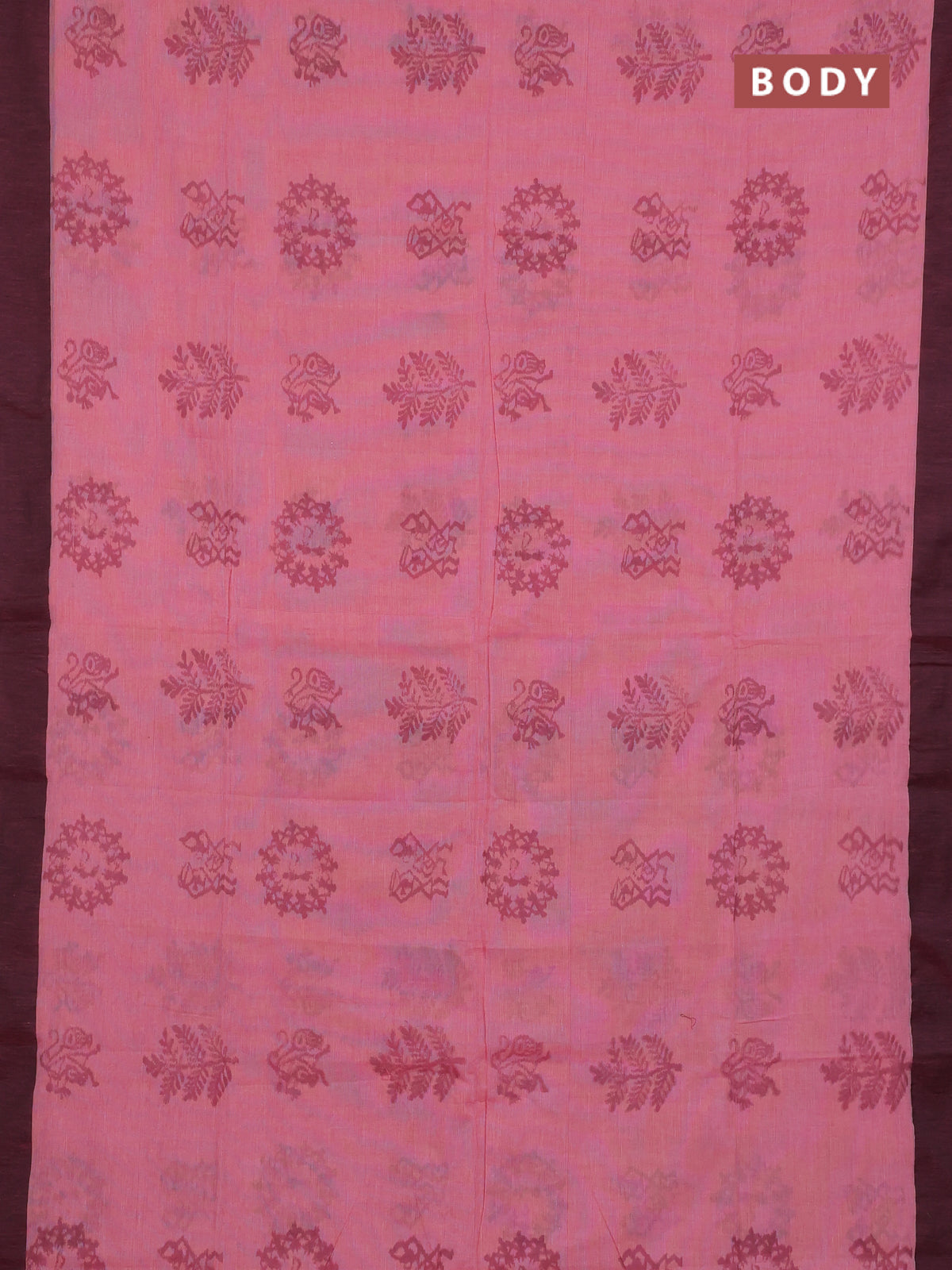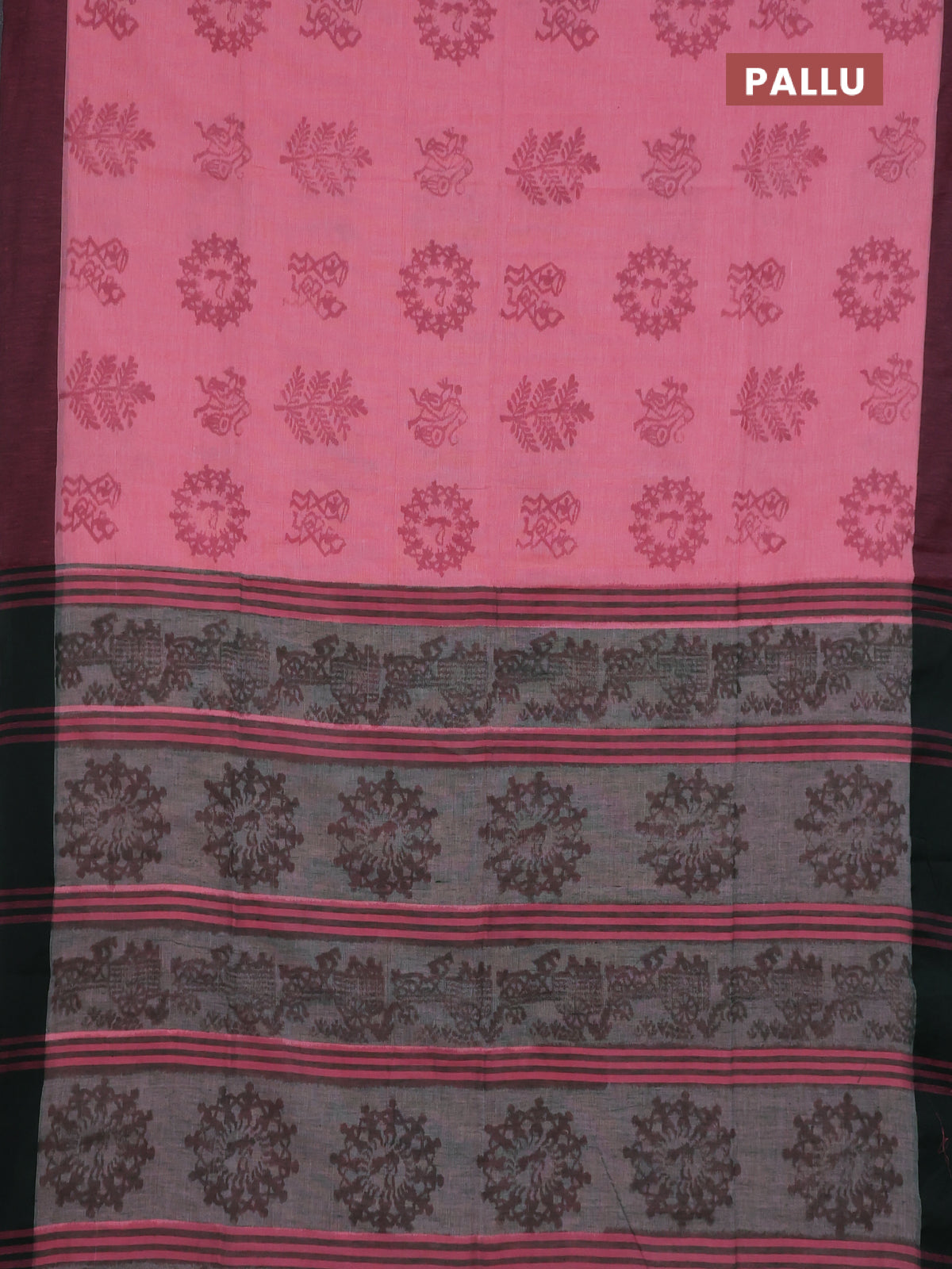 Bengal soft cotton saree candy pink and green with butta weaves and simple border