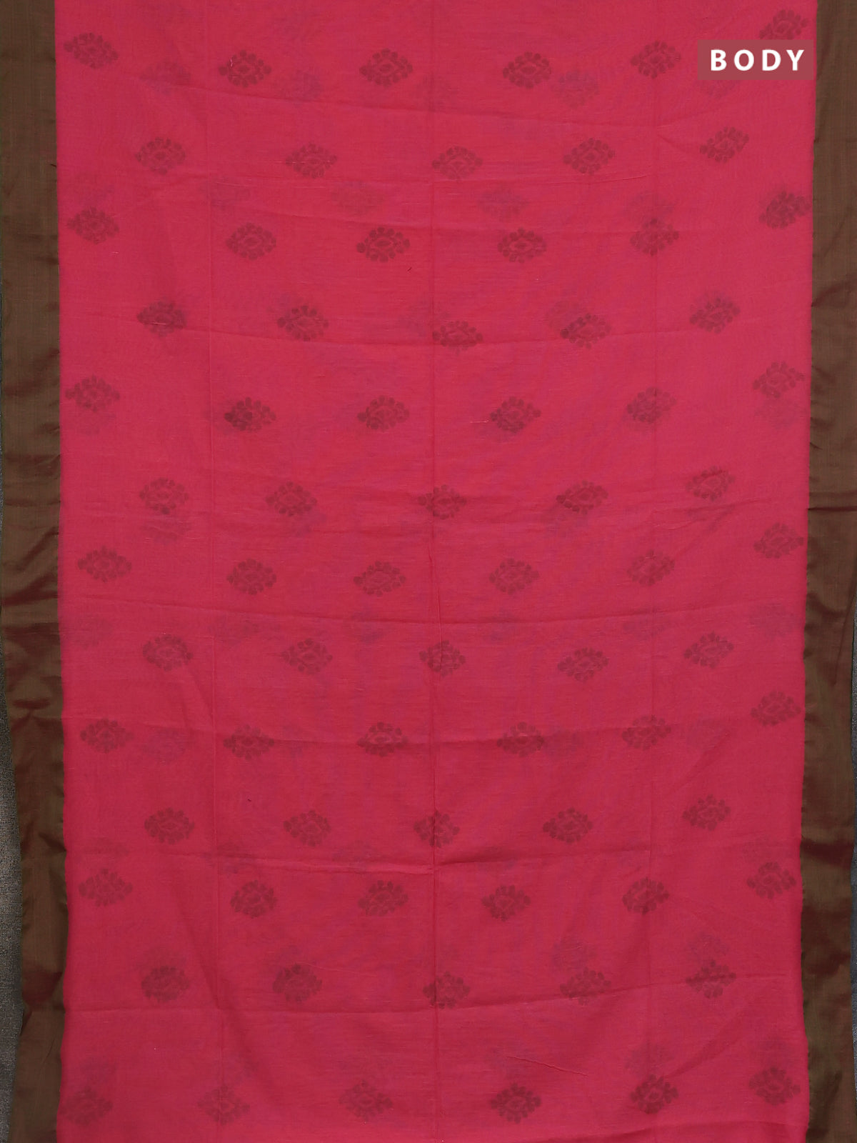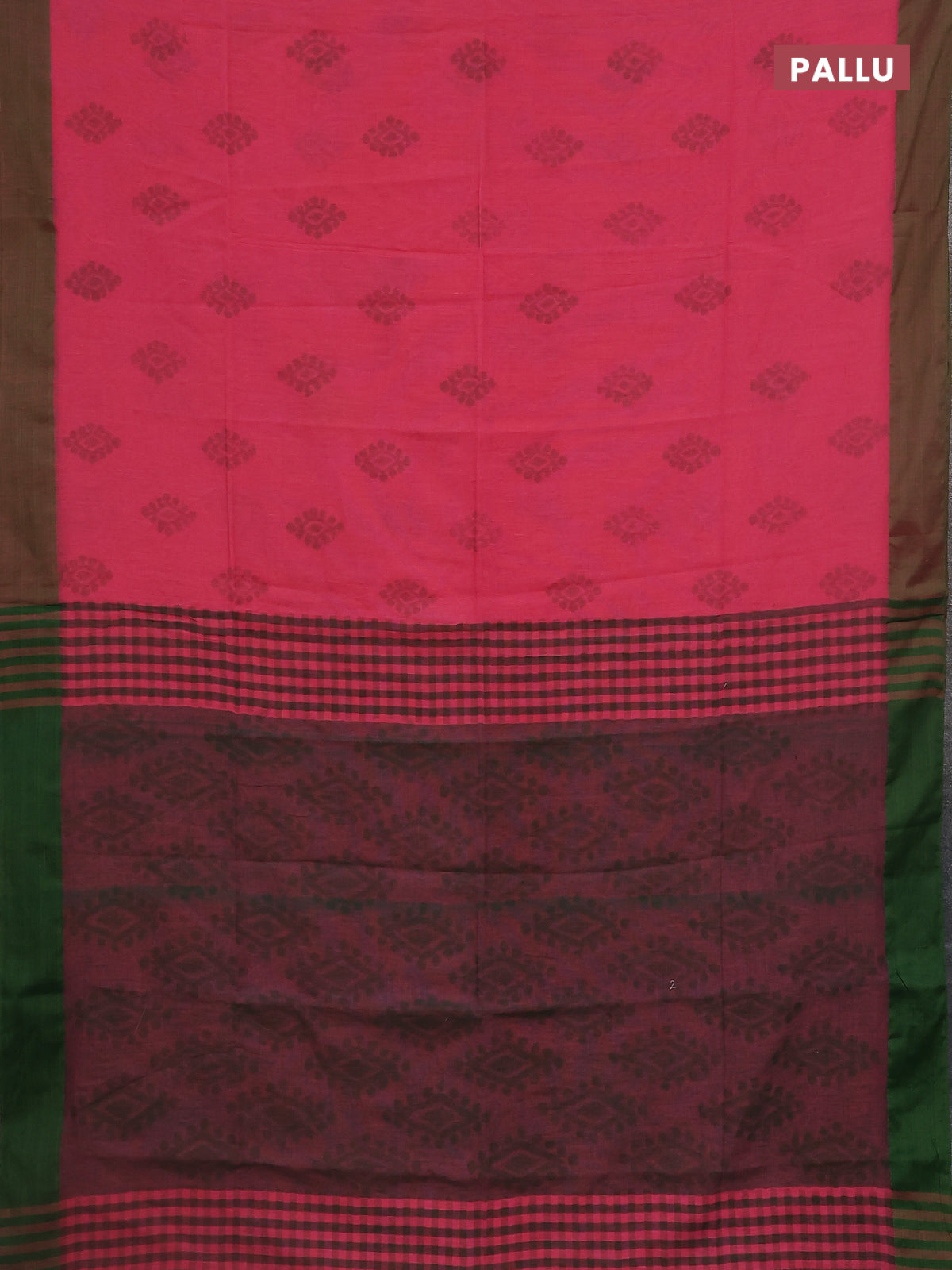 Bengal soft cotton saree candy pink and green with butta weaves and simple border