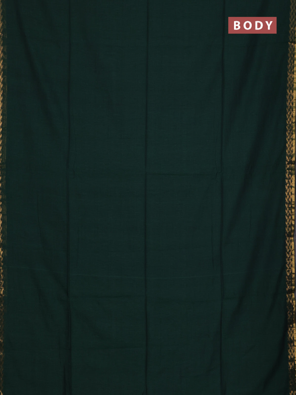 Bengal soft cotton saree dark green and magenta pink with plain body and zari woven border