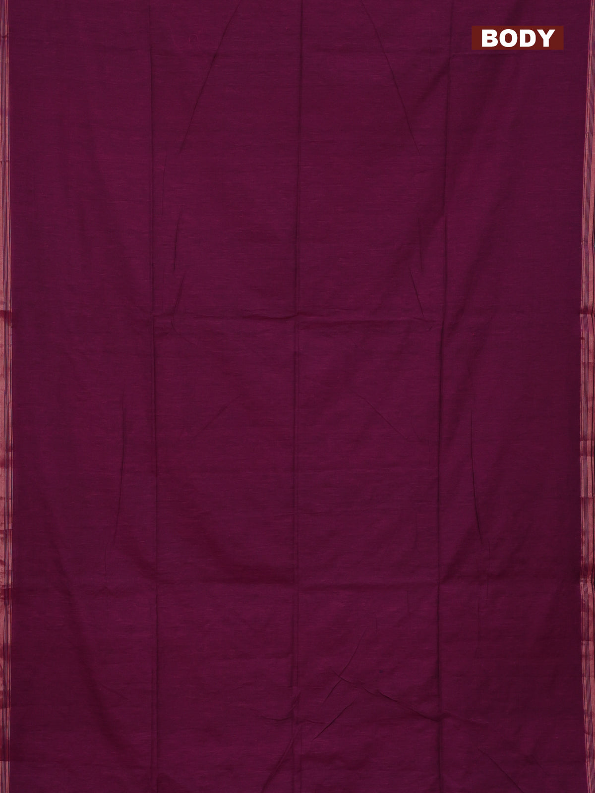 Bengal soft cotton saree dark magenta pink and blue with plain body and zari woven border