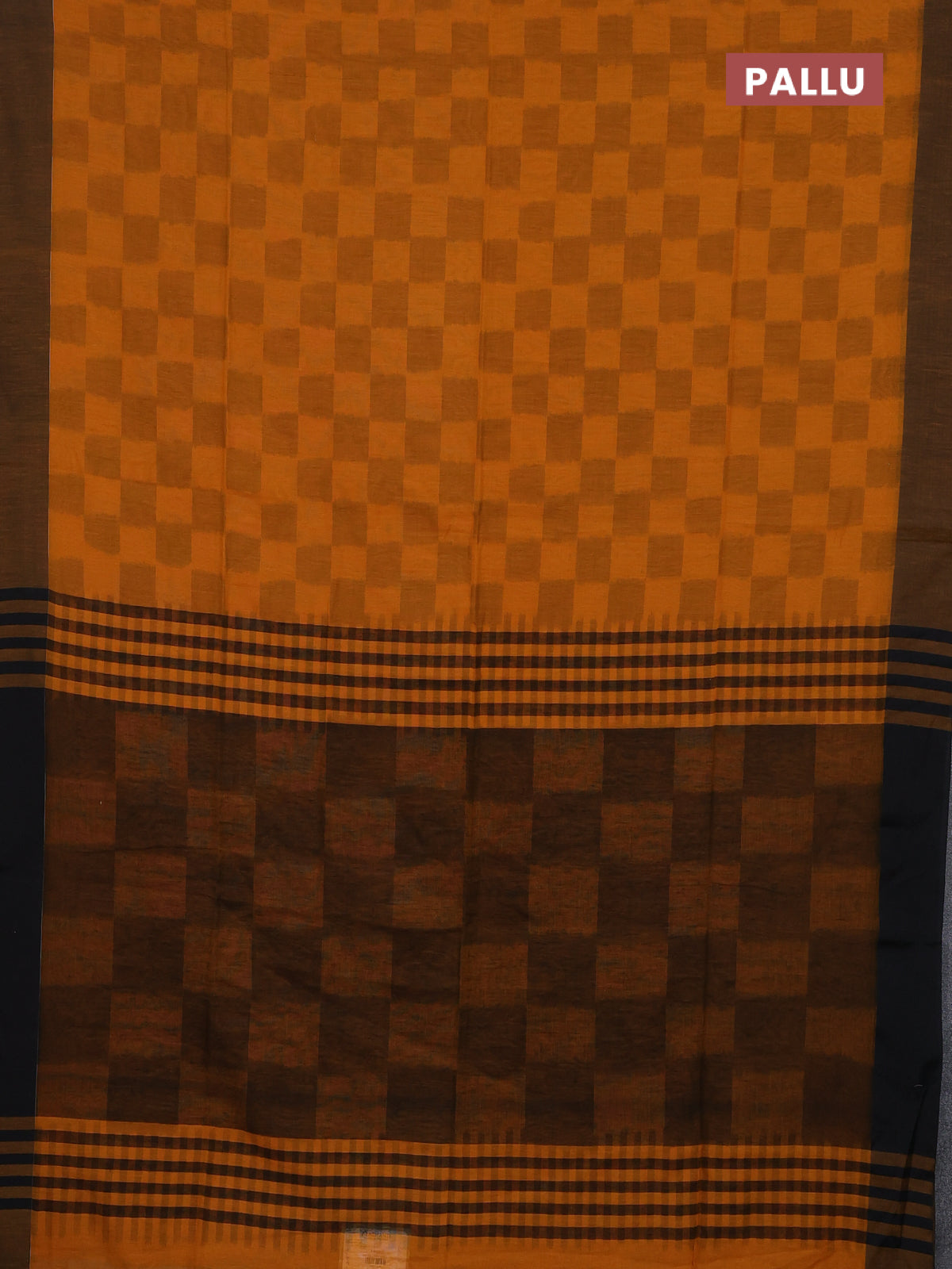 Bengal soft cotton saree dark mustard and black with allover weaves and simple border