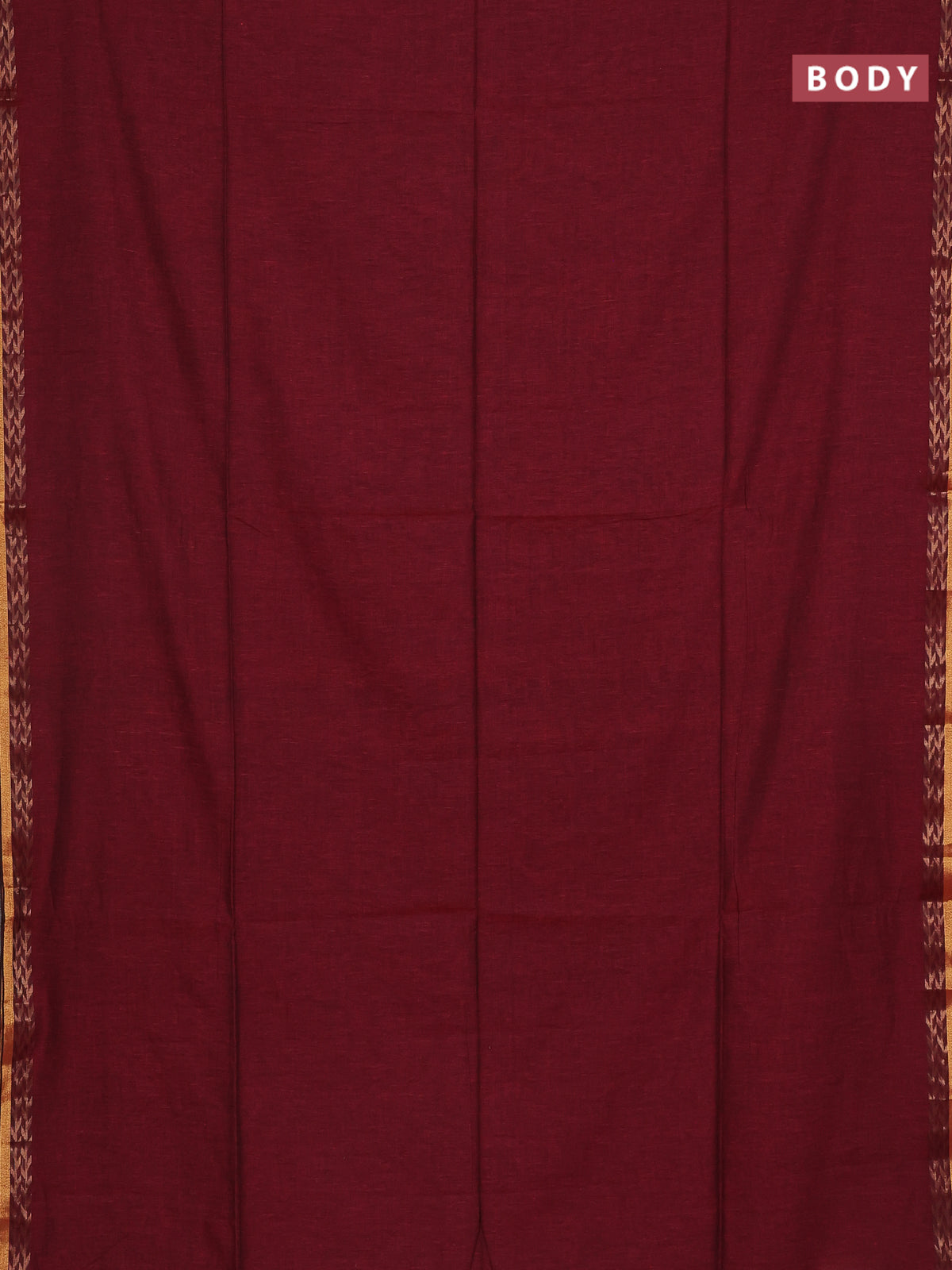 Bengal soft cotton saree deep maroon and blue with plain body and zari woven border