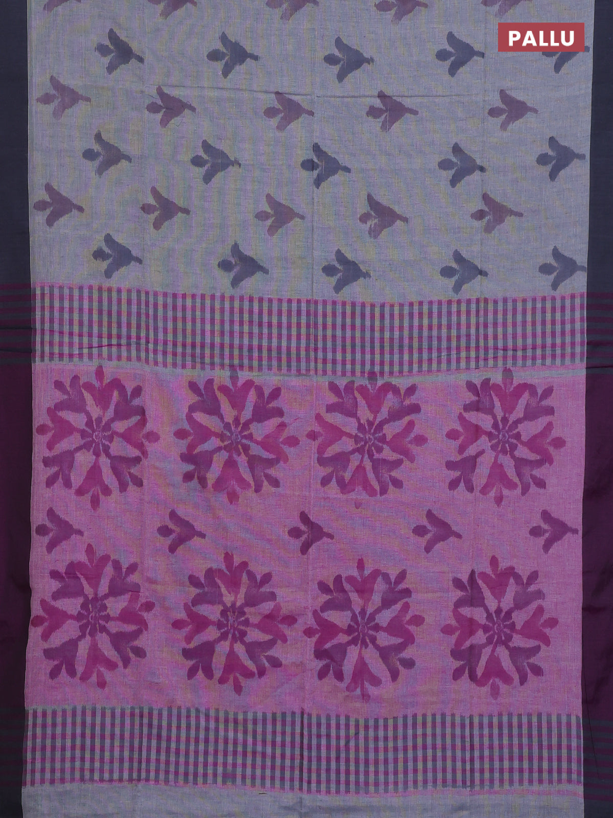 Bengal soft cotton saree grey and purple with allover butta weaves and simple border