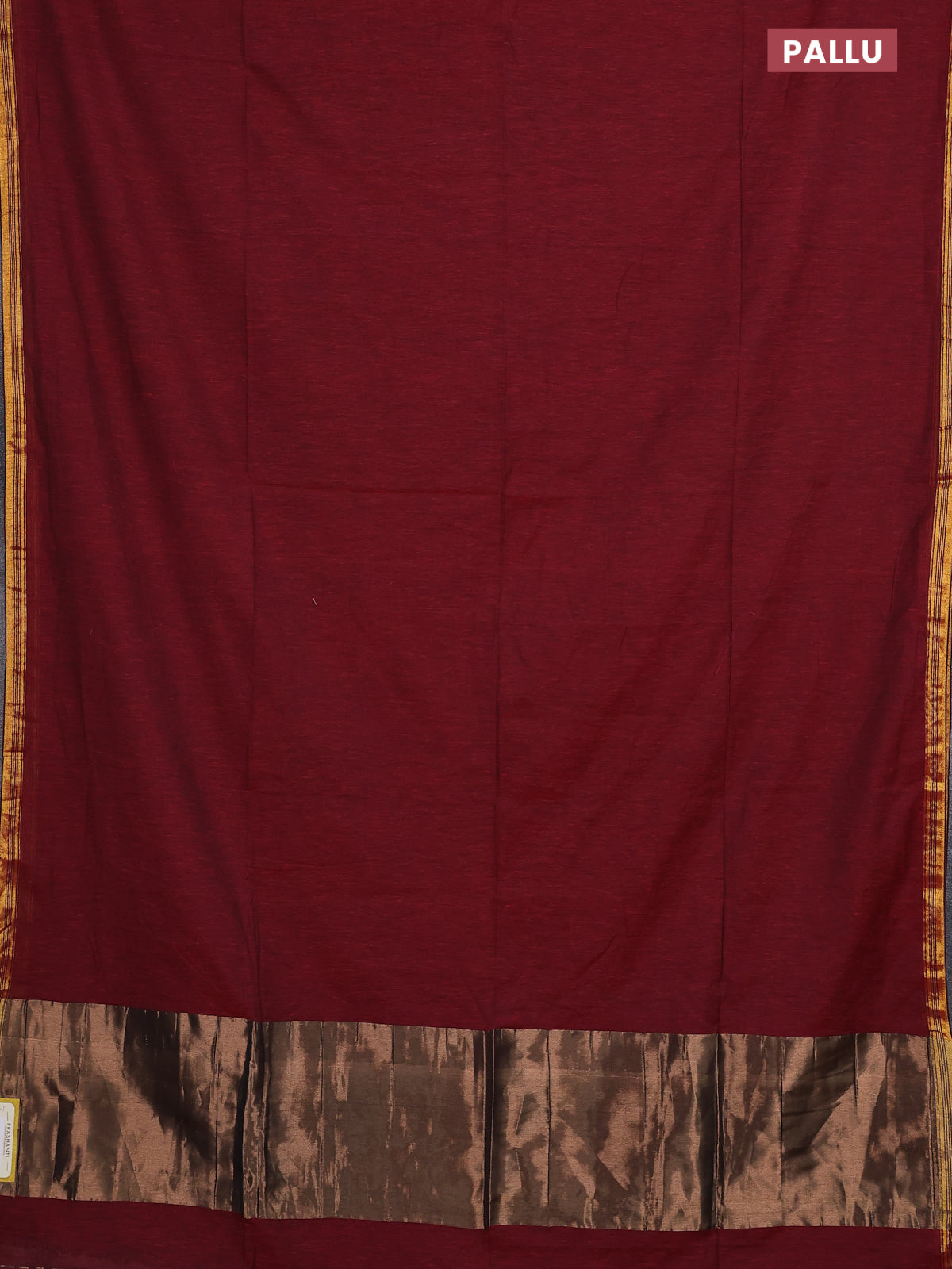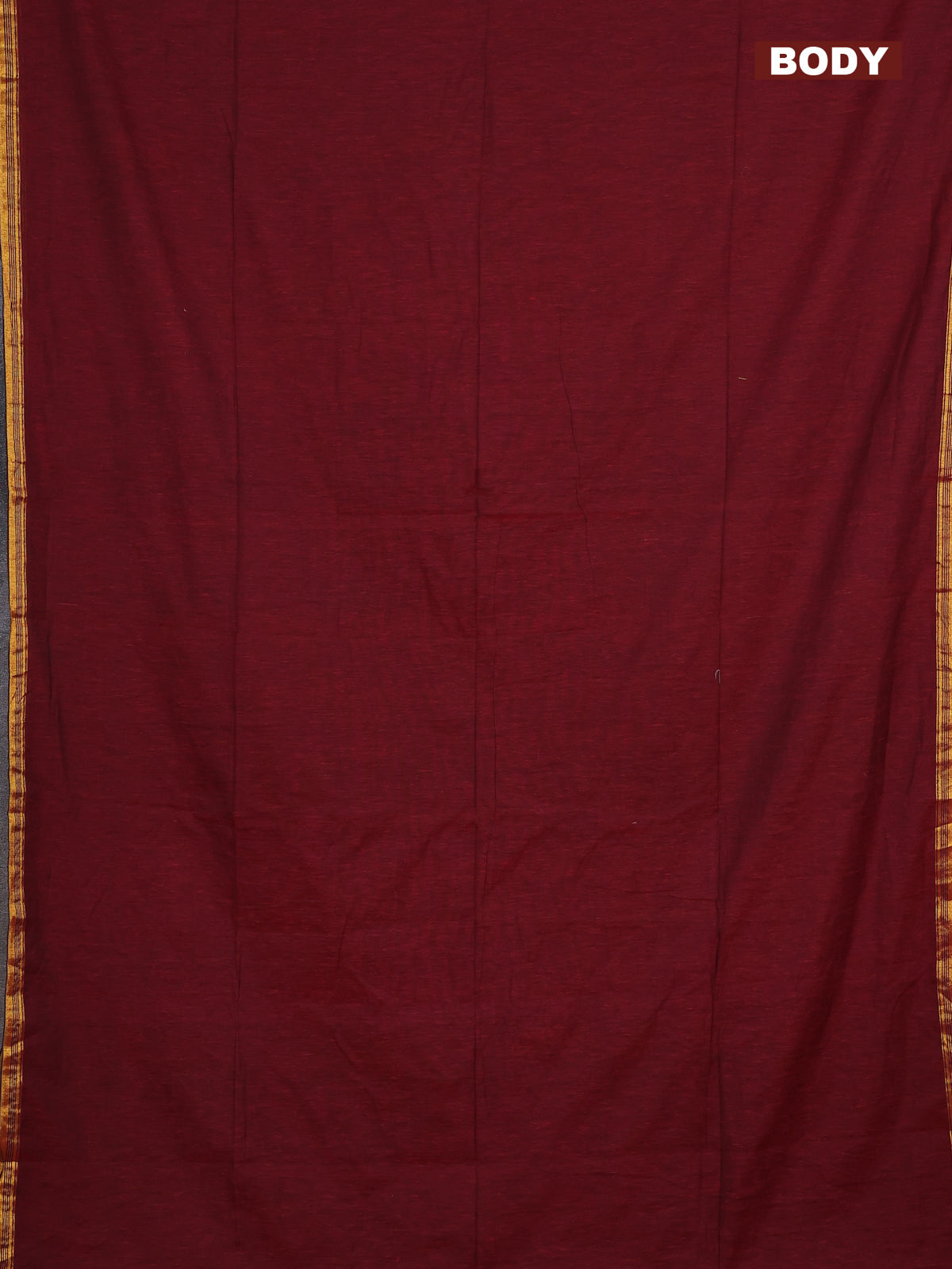Bengal soft cotton saree maroon with plain body and zari woven piping border