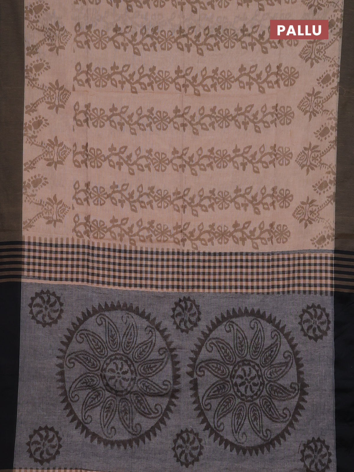 Bengal soft cotton saree sandal and black with allover weaves and simple border