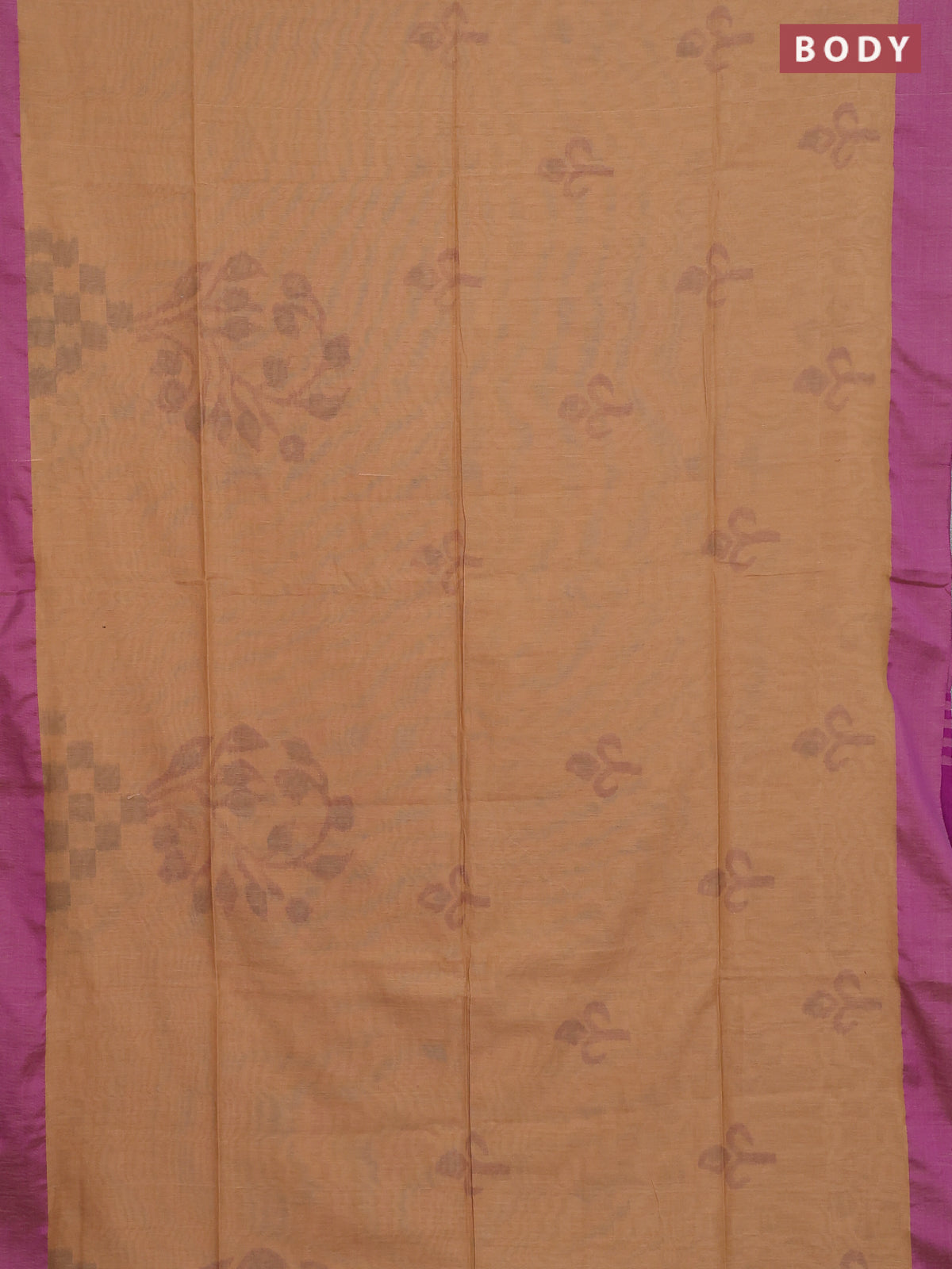 Bengal soft cotton saree sandal and purple with allover weaves and simple border