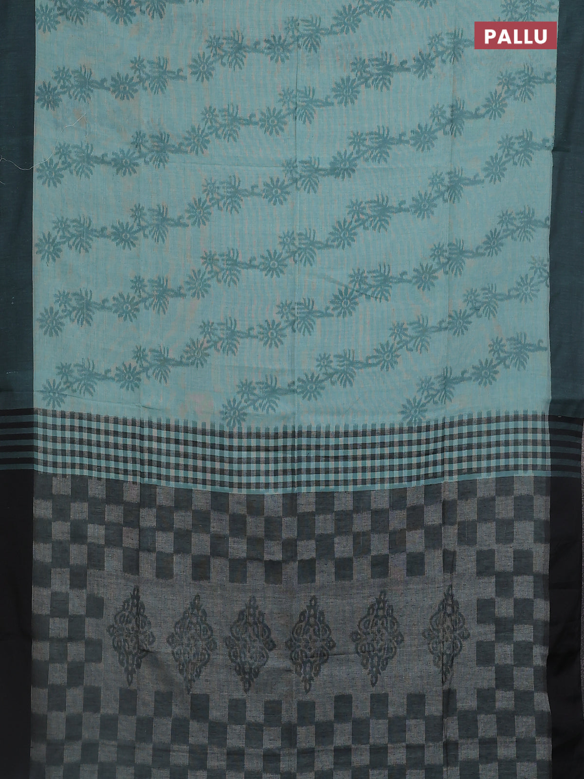 Bengal soft cotton saree teal blue and black with allover weaves and simple border