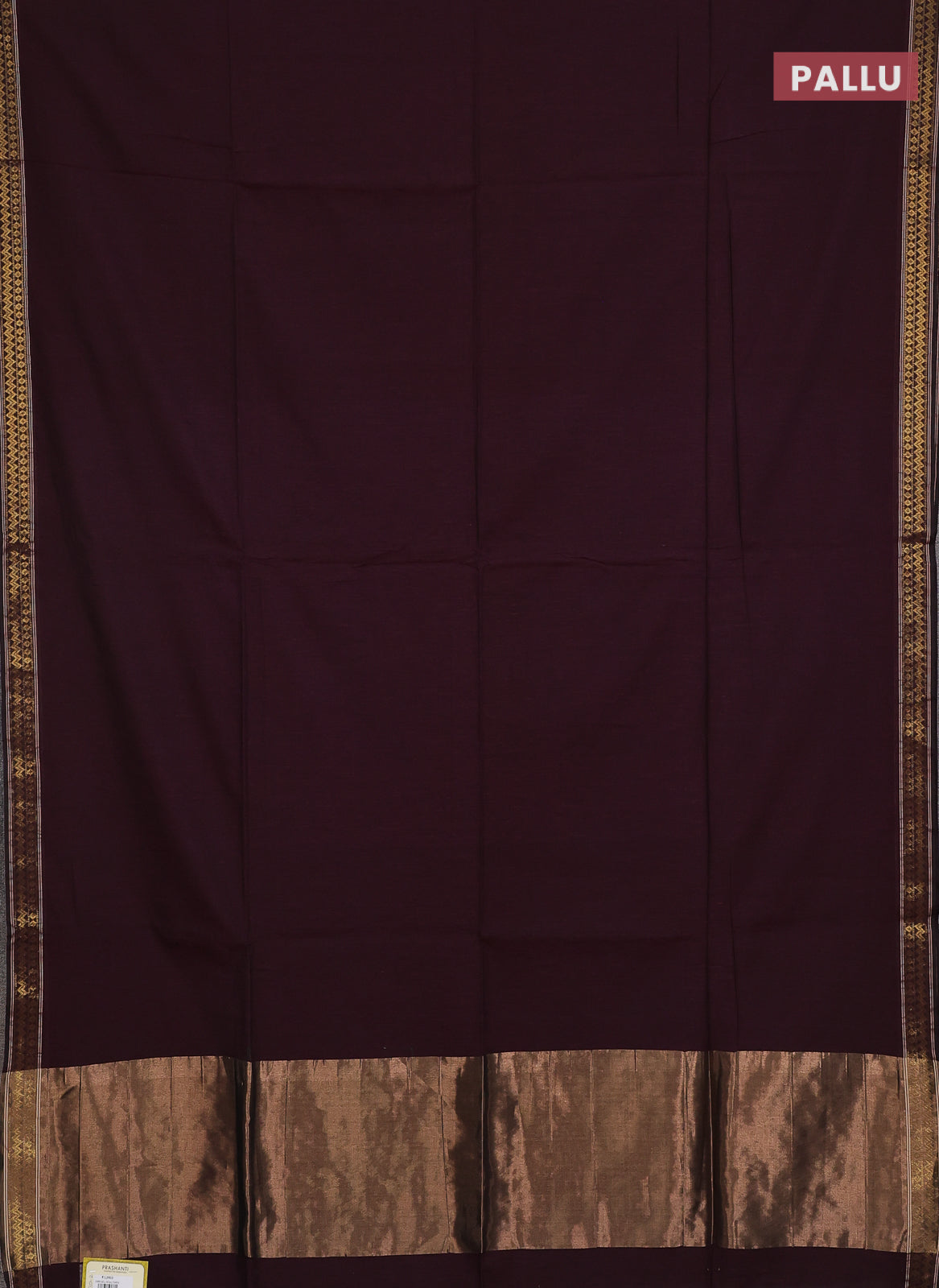 Bengal soft cotton saree wine shade and mustard yellow with plain body and zari woven border