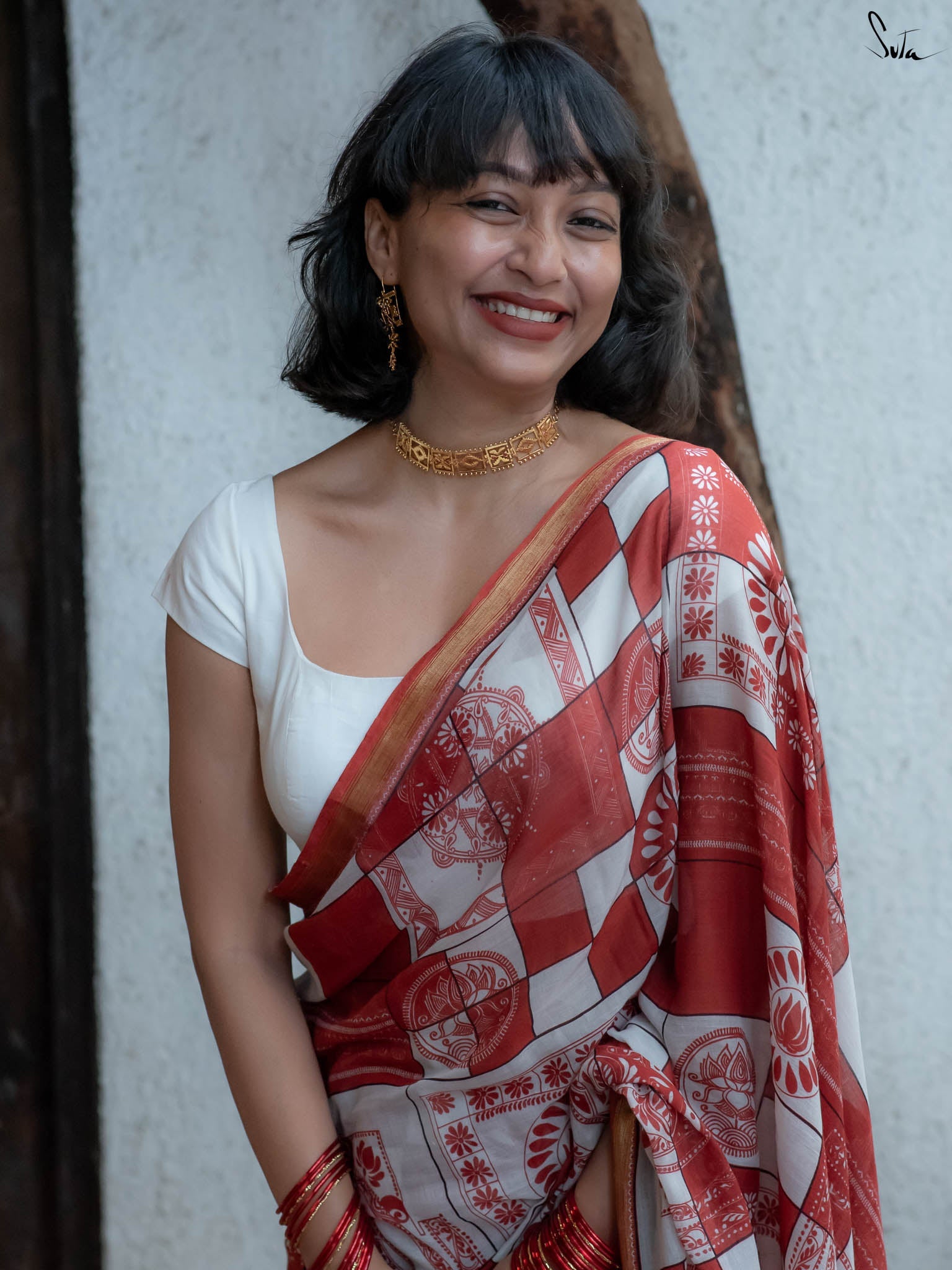 Simple never looked this striking. This white cotton blouse with a clean U-neckline is that quiet essential every Pujo wardrobe needs. Breathable, easy, and endlessly versatile, it slips into your festive line-up without asking for effort.