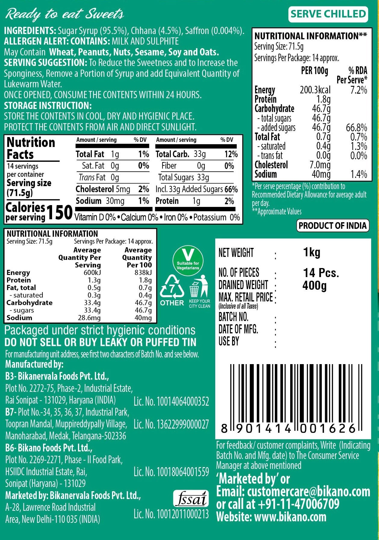 These are cottage cheese balls dipped in sugar syrup, flavoured with Saffron. Being made from milk, they are naturally rich in calcium and much lower in calories