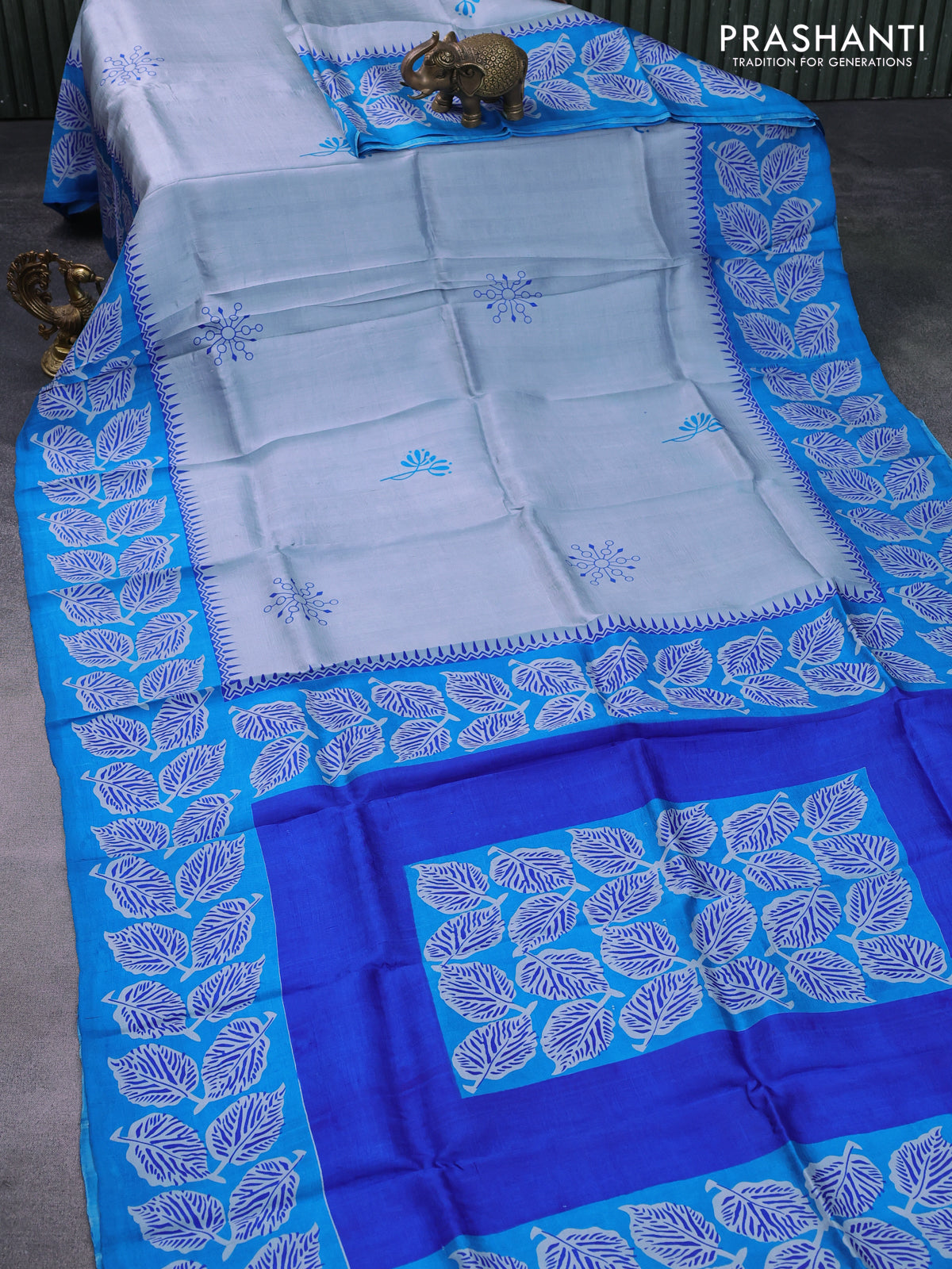 Bishnupuri silk saree pastel blue and cs blue with butta prints and leaf printed border