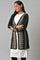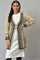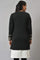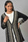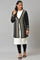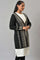 Mid Length Anthracite And Sea Salt Front Open Reversible Jacquard Cardigan With Delicate Tonal Border Pattern.