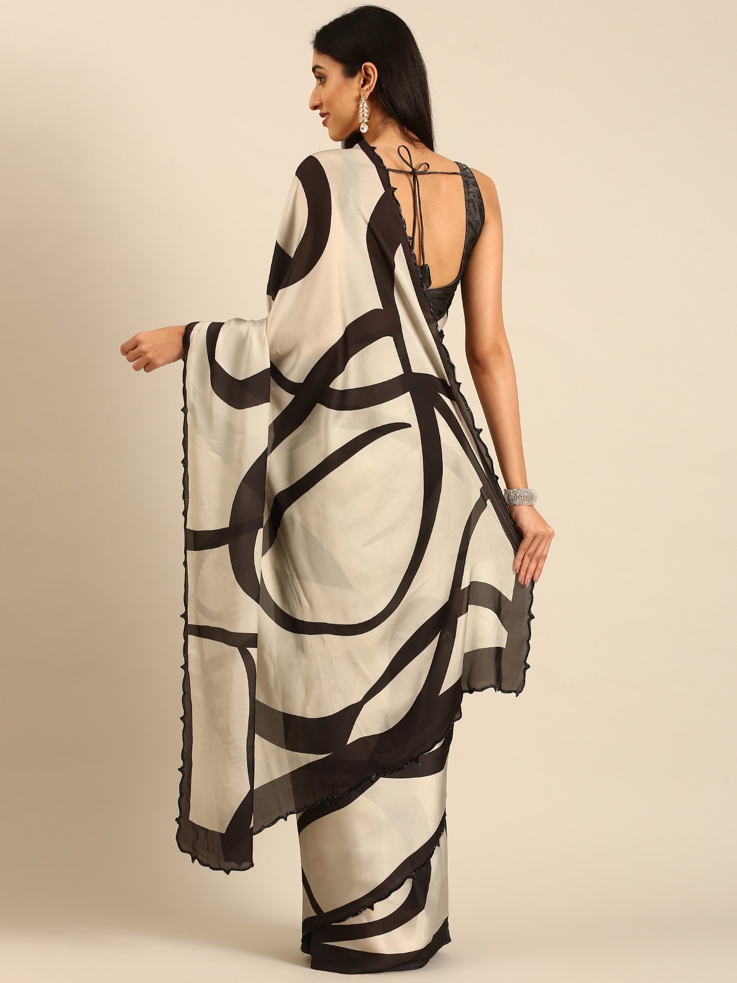 Experience elegance in this black and white printed satin saree, thoughtfully designed for both comfort and style. The soft satin fabric feels gentle against your skin, while the Swarovski embroidery adds a touch of sparkle to highlight your unique beauty. Ideal for special moments, this saree helps you look and feel confident with its graceful flow and exquisite detailing.