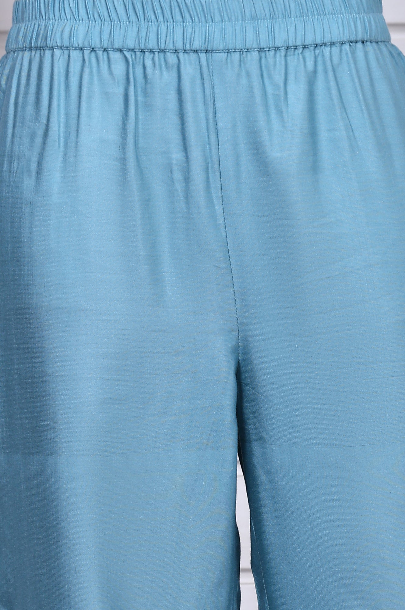 Elevate your ethnic wardrobe with this blue Anarkali set, featuring abstract prints and delicate bead embellishments on jacquard fabric. The flowy kurta, paired with coordinated palazzos and a soft dupatta, makes this ensemble a festive staple. Ideal for semi-formal celebrations, the print lends a contemporary spin to a traditional silhouette. With its cool blue tones and tactile texture, this set blends comfort with charm.