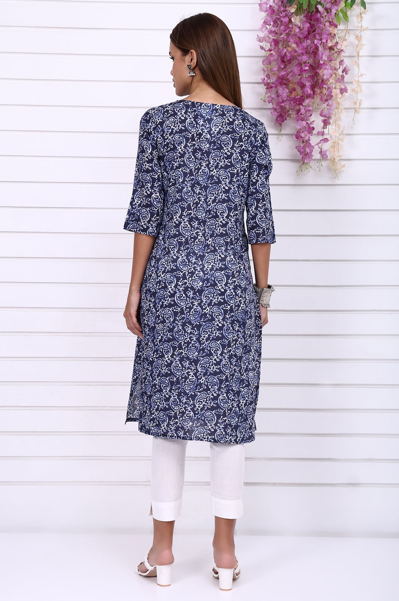 Blue Batik Printed Pure Cotton Straight Casual Kurta
