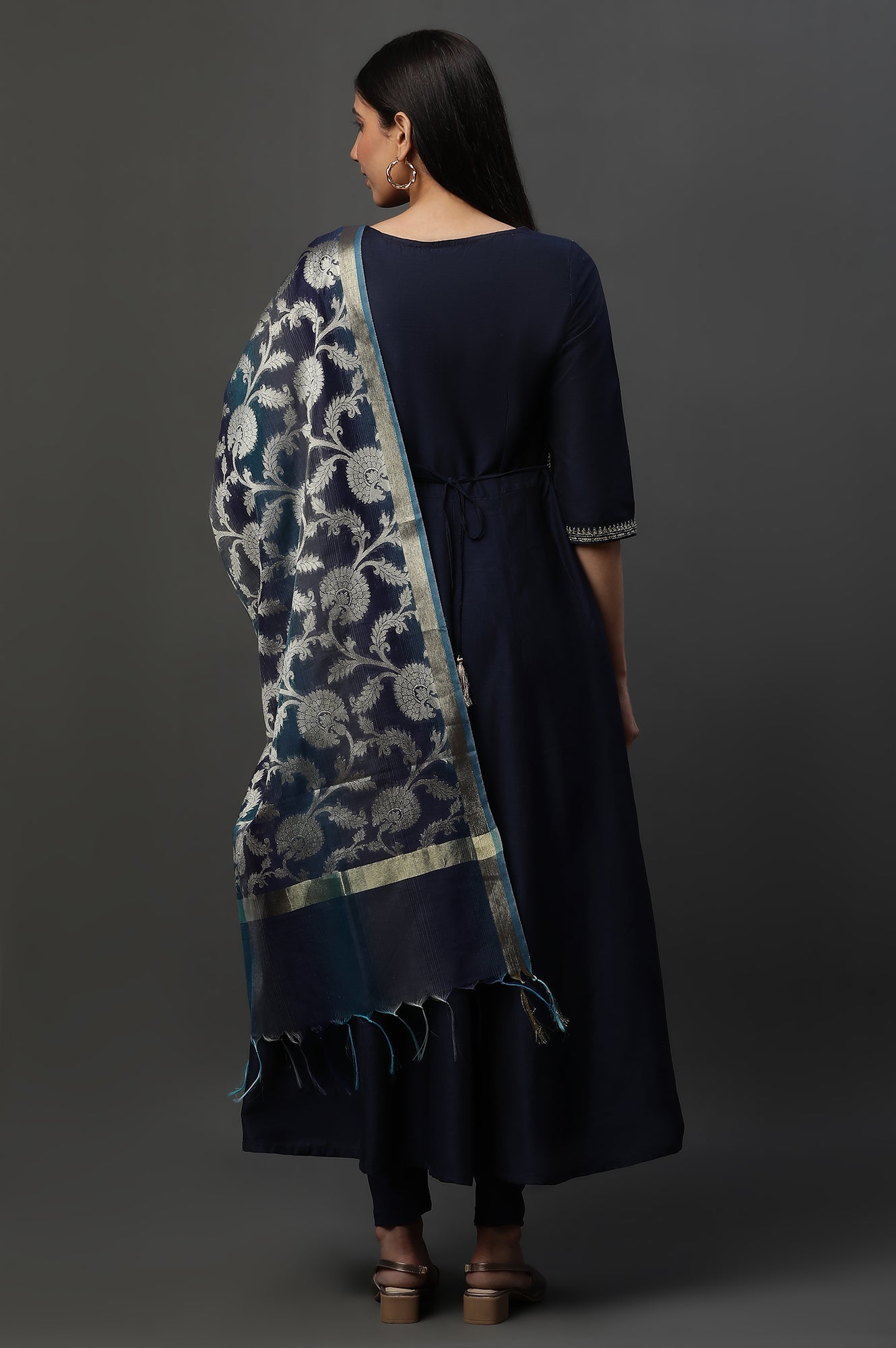 Blue Embroidered Anarkali Festive Kurta, Tights and Dupatta Set