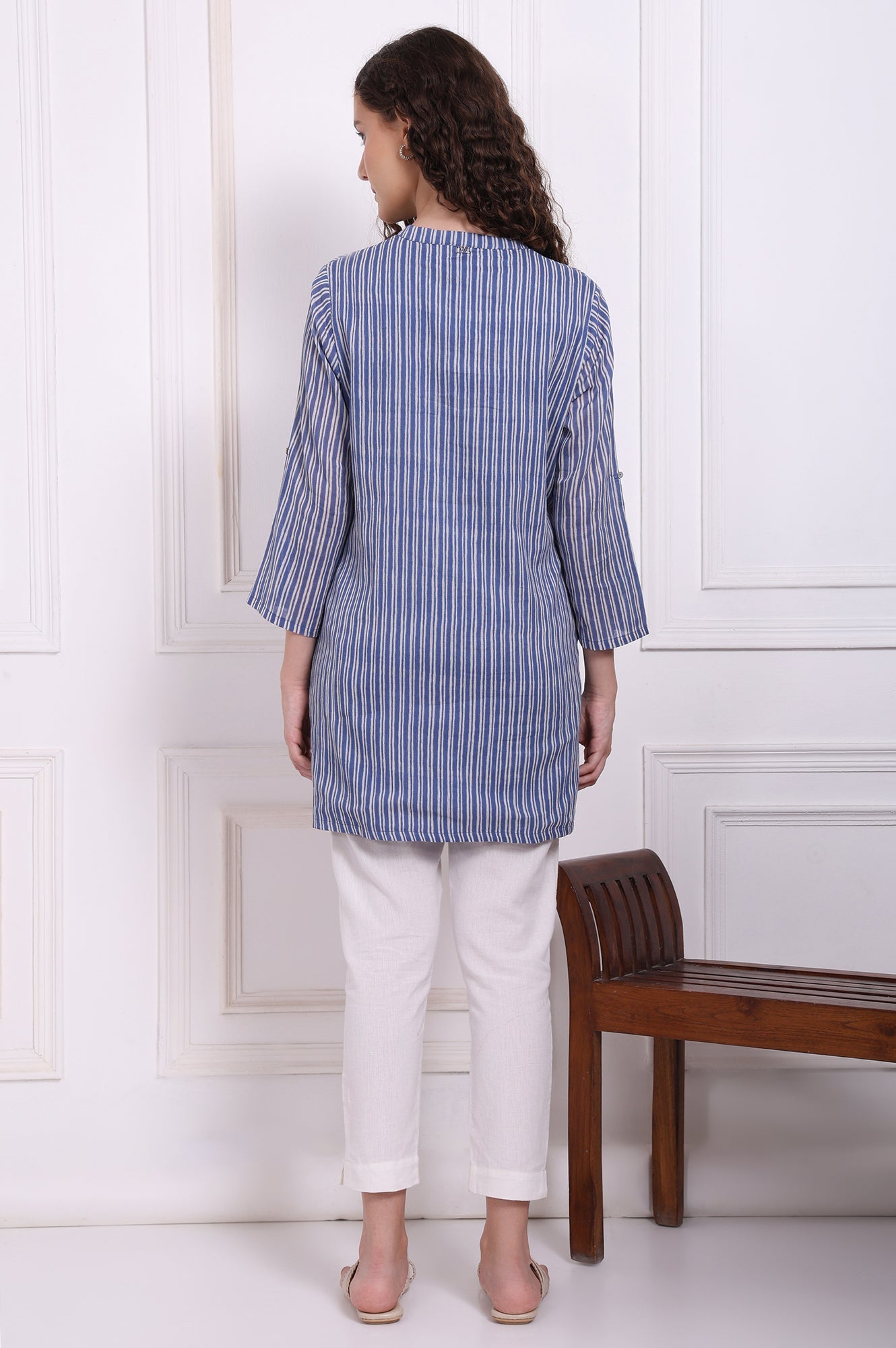 Crafted in breathable pure cotton, this top effortlessly combines classic embroidery with subtle print elements. The soft blue palette makes it suitable for daywear, while the detailed thread work introduces a handmade appeal. Ideal for warm weather, the fabric keeps it airy and cool, while the structured cut offers a crisp silhouette that layers well with ethnic or fusion bottoms. This is a staple for anyone seeking a blend of craft and comfort in daily wear. It’s versatile enough for college, work-from-home days, or casual errands.