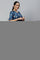 Elegant and feminine, this dark blue printed dress is a dream to float in. It is enriched with styling details such as mock angrakha bodice, multiple tiers sliding through the length of the dress, and delicate fabric ties to adjust the fit.