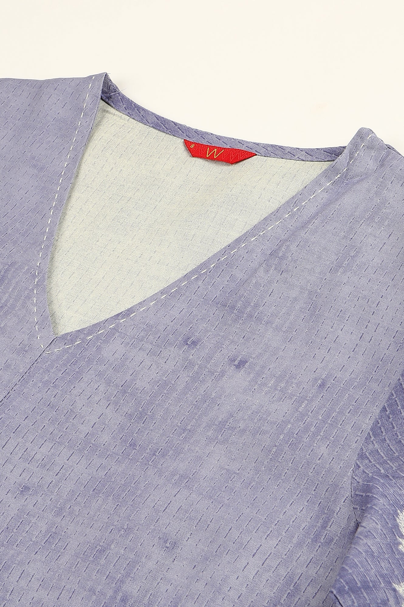 Periwinkle Blue Floral Printed kurta With Embroidery Detail On V-Neck