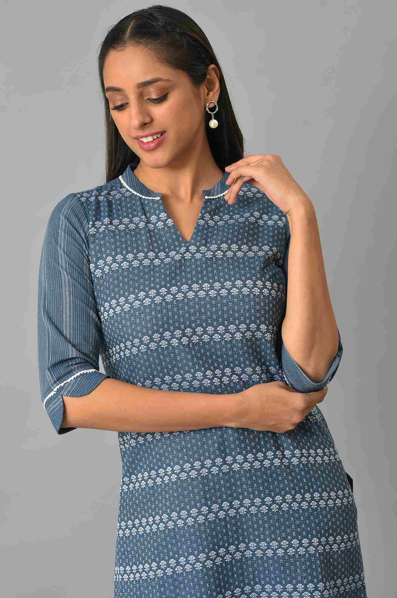 A Signature Aurelia Silhouette, This Body-Skimming Straight kurta Is Designed In A Rich And Splendid Dobby. Subtle And Delicate Lace Adds Delicacy To The Garment. The Cuff Detail On The Sleeves Add A Subtle Appeal To The Entire Look.