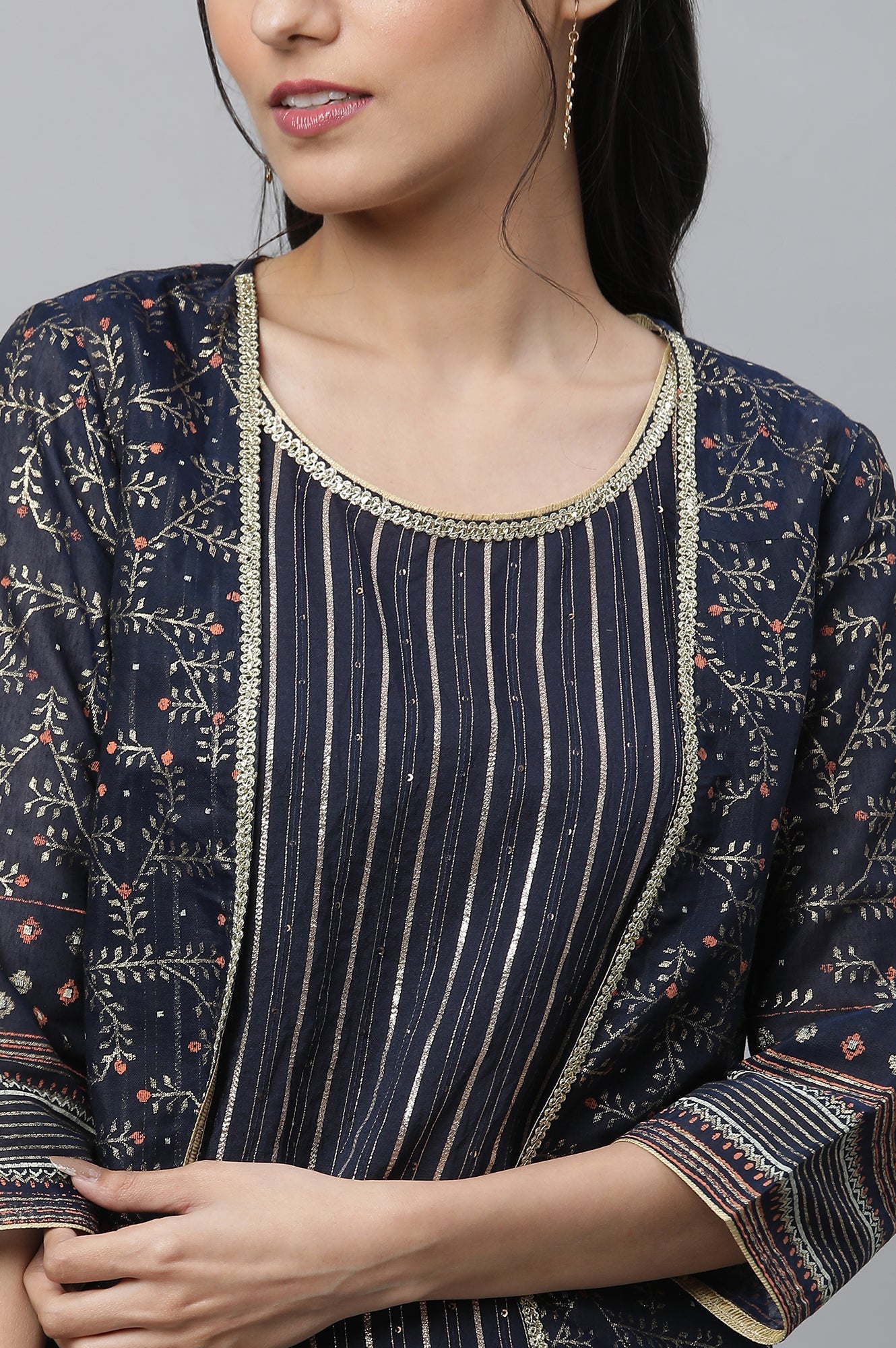 Blue Gilet, Kurta and Narrow Palazzo Festive Set