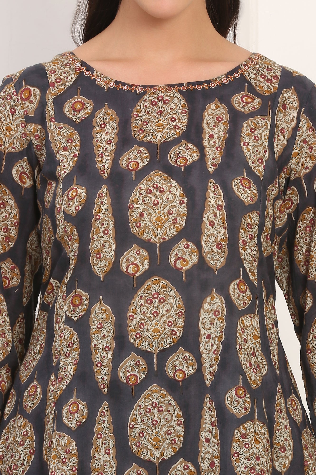 Effortlessly elegant and grounded in tradition, this blue aster pure cotton kurta for women by Folksong brings a touch of timeless charm to everyday ethnic dressing. Cut in a straight silhouette with a regular fit, it features a classic round neckline and 3/4th regular sleeves for a balanced look. The kurta is tastefully adorned with an all-over floral print and delicate mirror work, adding subtle festive appeal. Crafted in breathable, 100% pure cotton fabric, it ensures comfort across warm-weather days. The knee-length design with no slit makes it versatile for styling with a variety of bottomwear options. Whether chosen for casual outings or everyday office wear, this kurta blends comfort and style with effortless grace, making it a must-have wardrobe staple.