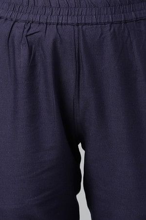 Blue Printed kurta In Mandarin Collar With Button Placket And Three-Quarter Sleeves. Paired With White Solid Palazzo In Mid-Rise And Elasticated Waistband.
