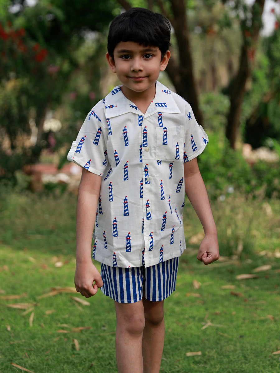 Blue Lighthouse Organic Cotton Block Printed Shirt