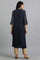 Blue mandarin neck gold foil kurta with placement print detail.