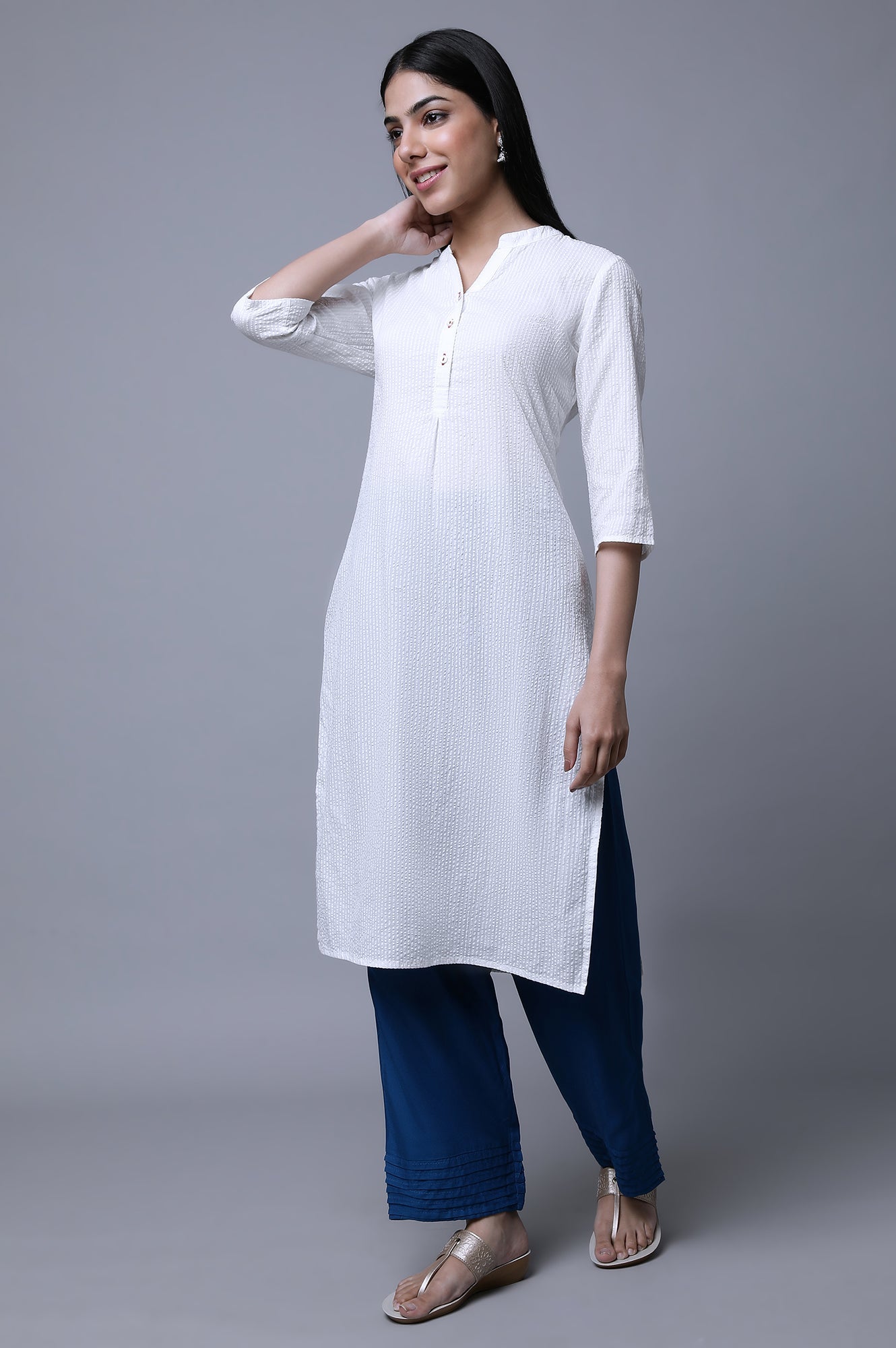 Solid Sea Port Narrow Fit Palazzo Pants In Mid-Rise With Partially Elasticized Waistband And Pleats At Bottom Hem. The Flat Front With Pocket On Both Sides, And Comfortable Fit Of The Palazzo Give You All-Day Long Comfort.