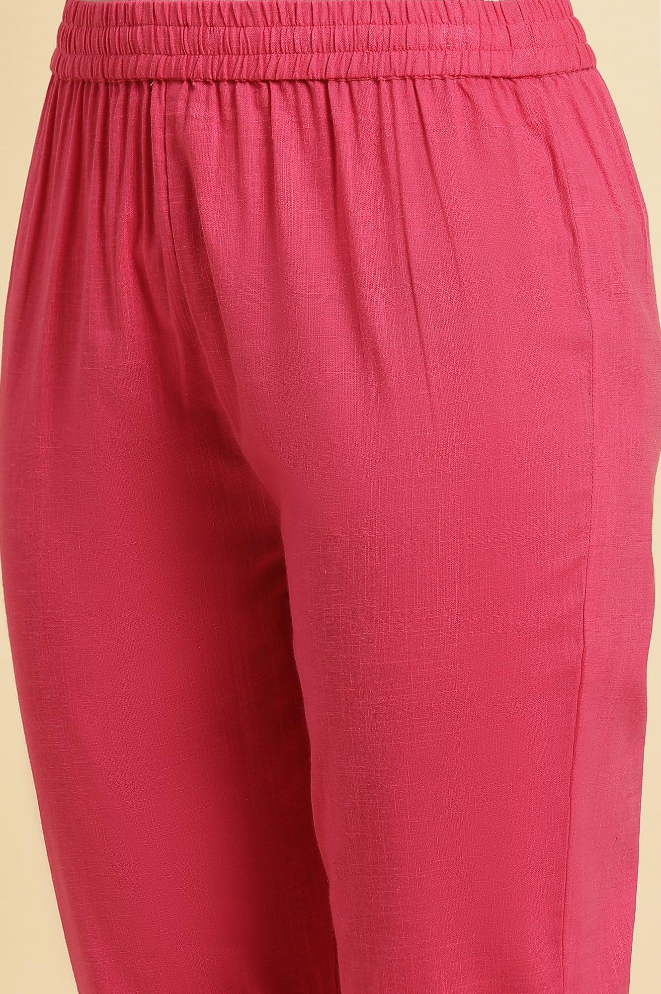 Sky Blue Gathered Anarkali Kurta, Feauturing Churidar Sleeves And V-Neck. It Is Crafted In Self-Textured Cotton Lurex Fabric And Is Adorned Sequin-Work On Neckline. It Is Paired With Fuchsia Pink Floral Printed Chiffon Dupatta And Solid Slim Pants.