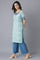 Rich in style and elegance, this ethnic set will turn heads where ever you go. The set includes blue straight fit kurta having elbow sleeves and floral motifs. And, it is paired with flared culottes tailored in high-rise and has elasticated waistband.