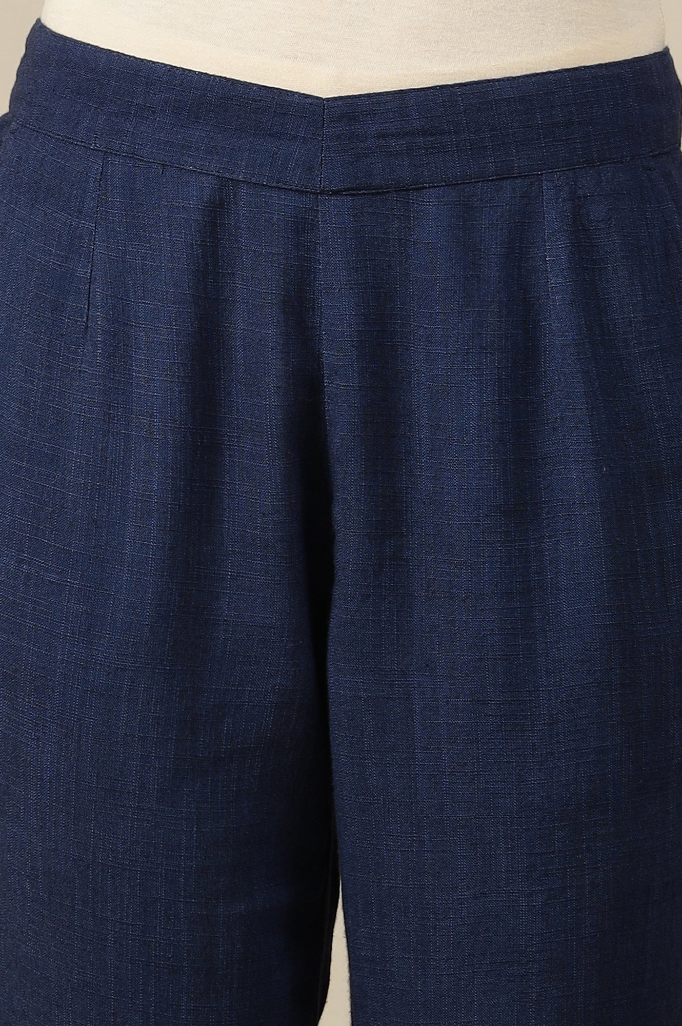 Blue Solid Rayon Flax Comfy Trousers with Pockets