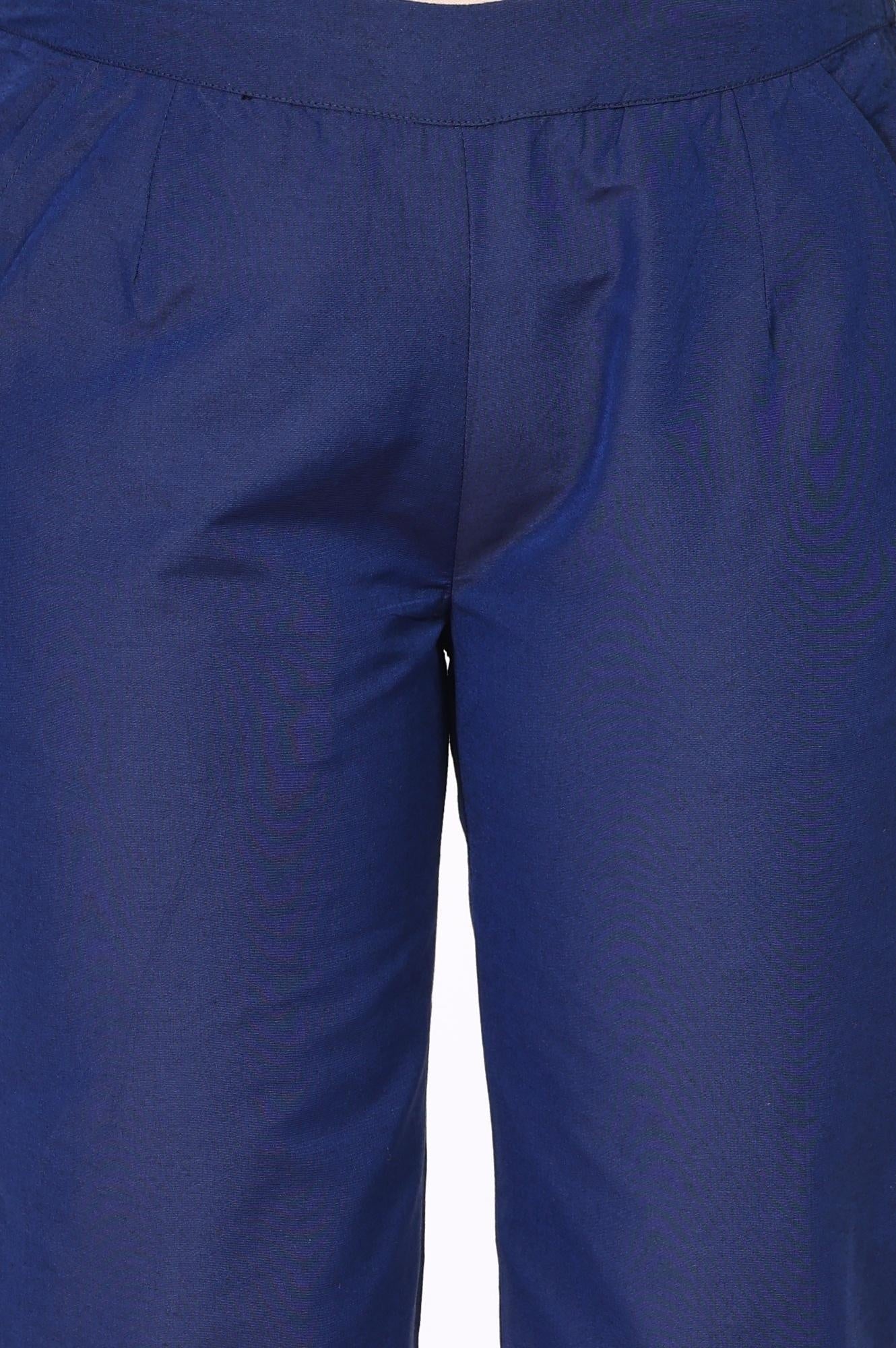 Tailored for effortless style, these blue solid rayon pants for women offer a sleek mid-rise profile with a pull-on closure. Designed with a straight-leg silhouette, the ankle-length hem adds a touch of modernity. Slant pockets provide practicality, while the woven fabric ensures durability and comfort. Perfect for casual outings or pairing with a kurta for a fusion look, these pants are a versatile addition to your wardrobe.