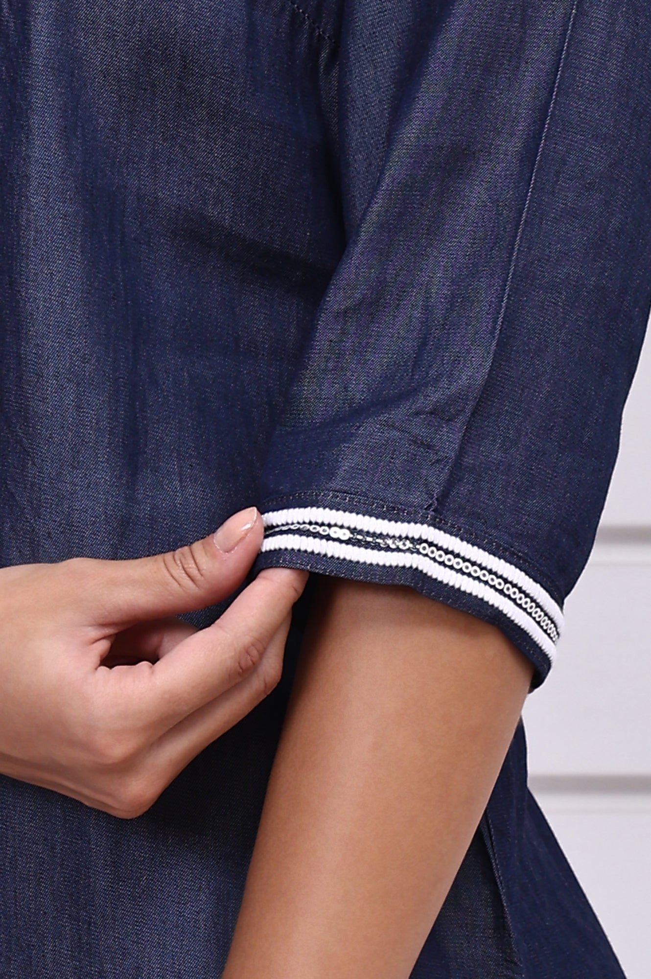 Woven in a soft, yarn-dyed cotton blend, the kurta carries a natural texture that enhances its handcrafted aesthetic. The straight-cut silhouette is balanced by the clean neckline and minimal 3/4th sleeves, offering a polished yet comfortable look. Subtle embroidery at the yoke adds refined detail, making this blue yarn-dyed embroidered kurta ideal for everyday office wear or casual meetings. The structured collar and rich blue hue lend a touch of sophistication to this understated staple.