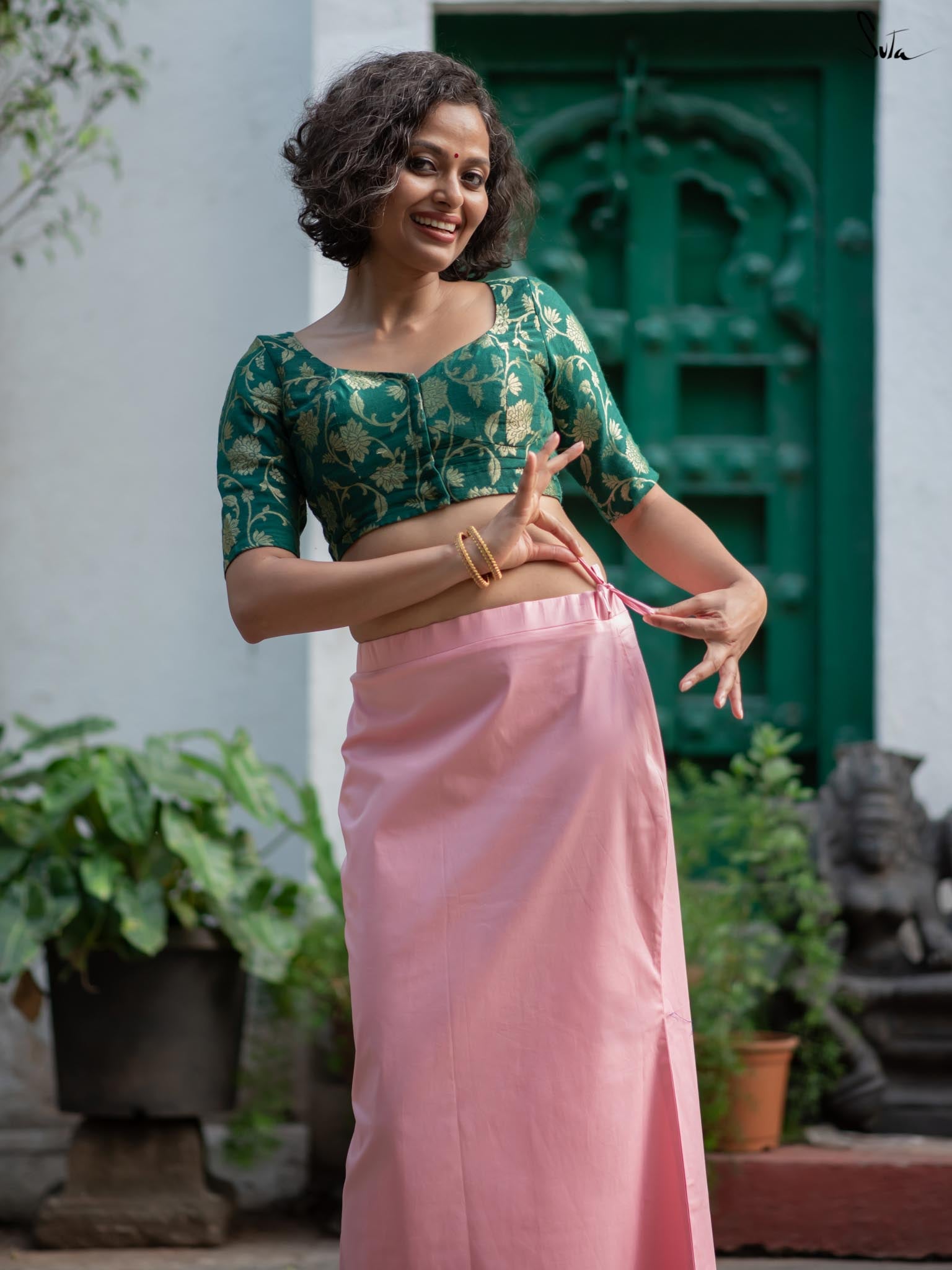 Crafted from luxurious cotton lycra fabric, the stunning underskirt in radiant light pink is all you need for the desired saree drape. The stretchable design ensures a comfortable fit, making it a beloved choice among women to pair with their favorite sarees and lehengas.