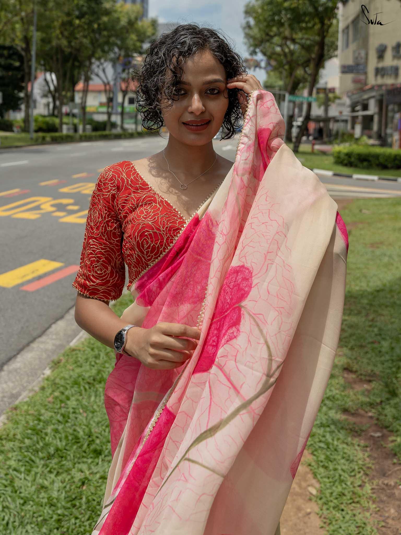 Blouse: The model is wearing XS size of blouse called Amira