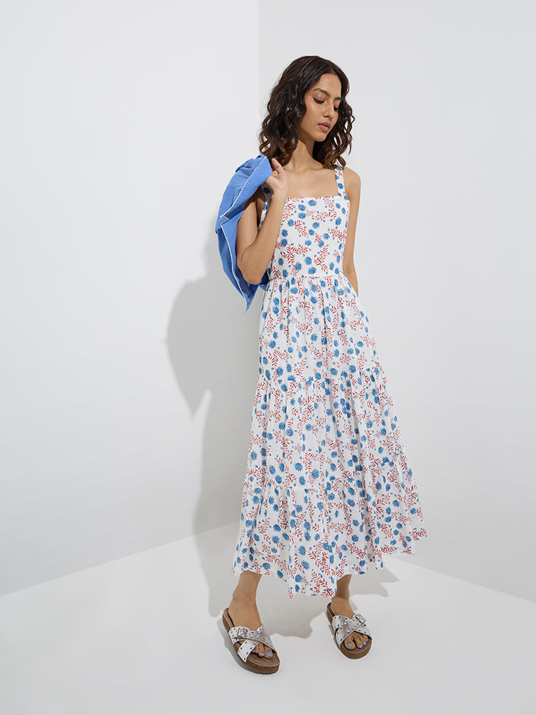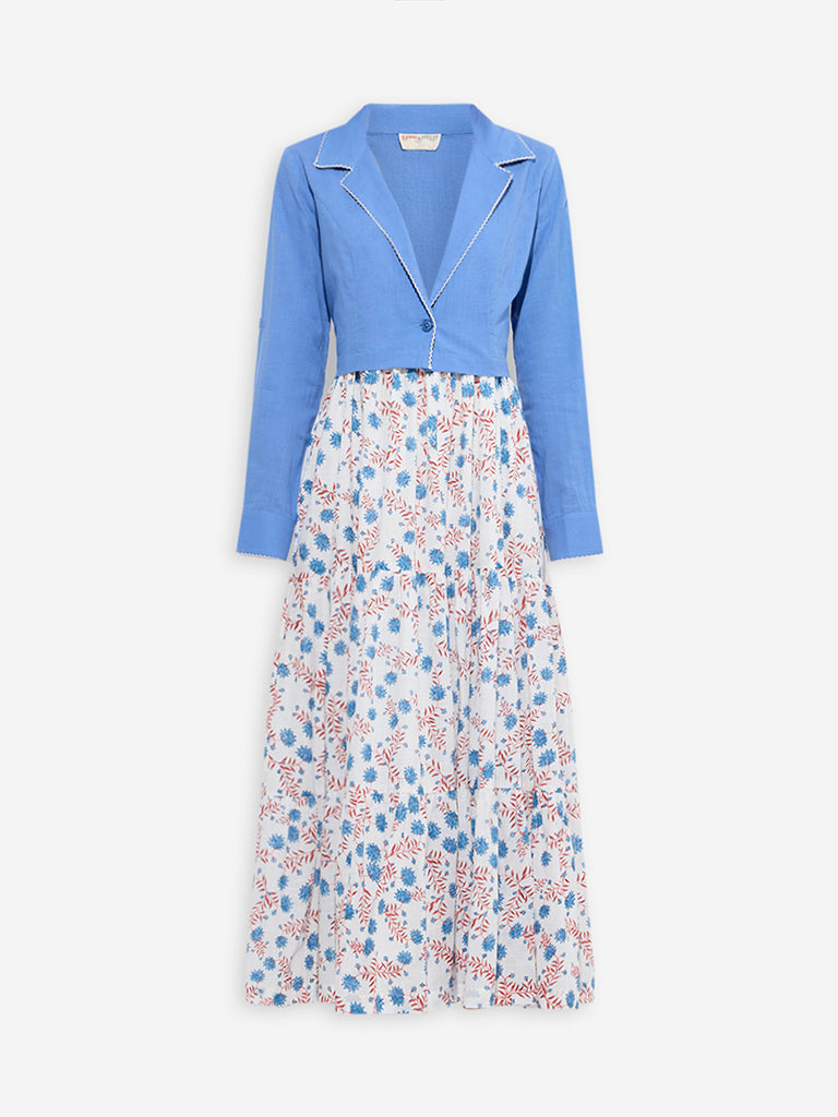 Bombay Paisley Blue Foliage Cotton Tiered Dress with Jacket