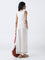 Bombay Paisley presents this off-white waistcoat crafted from a breathable cotton-linen blend. It features a round neckline and a sleeveless cut for a relaxed yet refined look. The button-down front is complemented by delicate embroidery, adding subtle texture and artisanal charm to everyday styling.