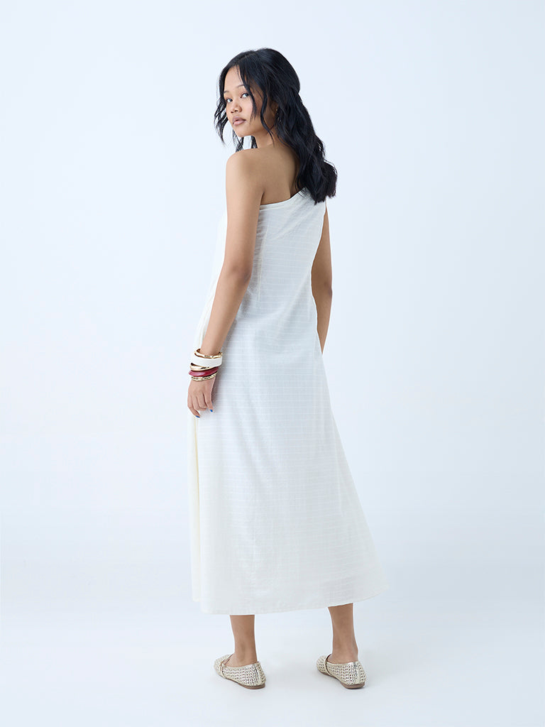 Bombay Paisley Off-White Floral Cotton One-Shoulder Dress