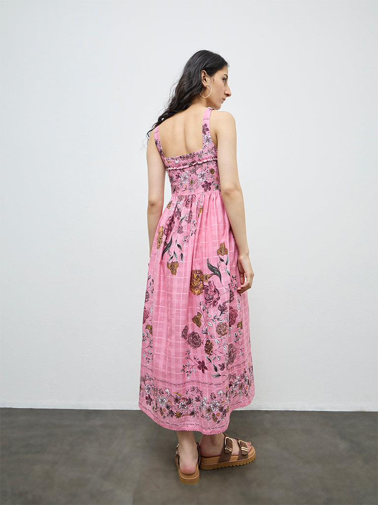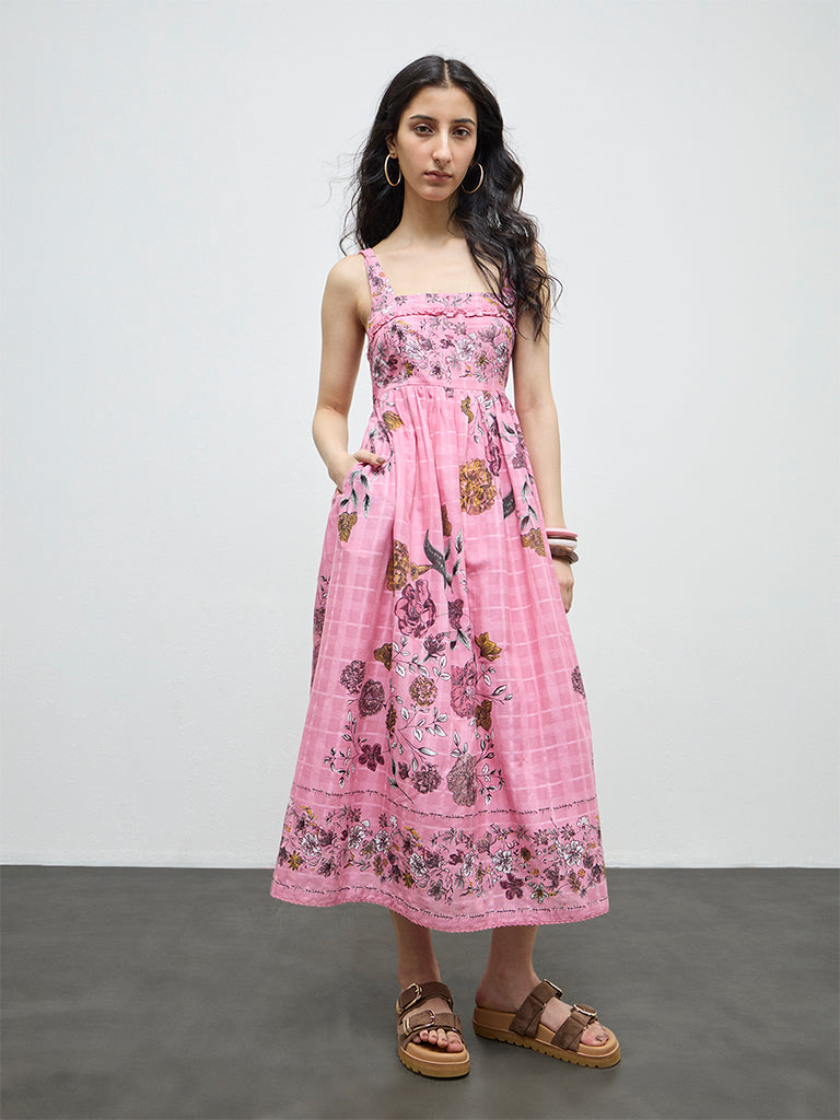 Bombay Paisley brings a fresh play of floral patterns to everyday dressing with this pink dress. The A-line silhouette features a square-neck highlighting ruffled details, a sleeveless profile and a concealed side zipper. Crafted from soft, cotton fabric, it offers an ultra soft feel, making this piece well suited for relaxed daytime plans.