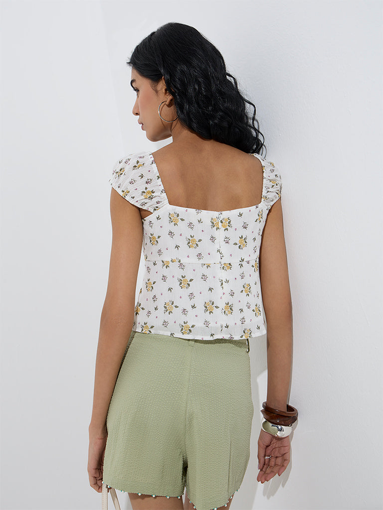 Bombay Paisley White Floral Printed Cotton Top