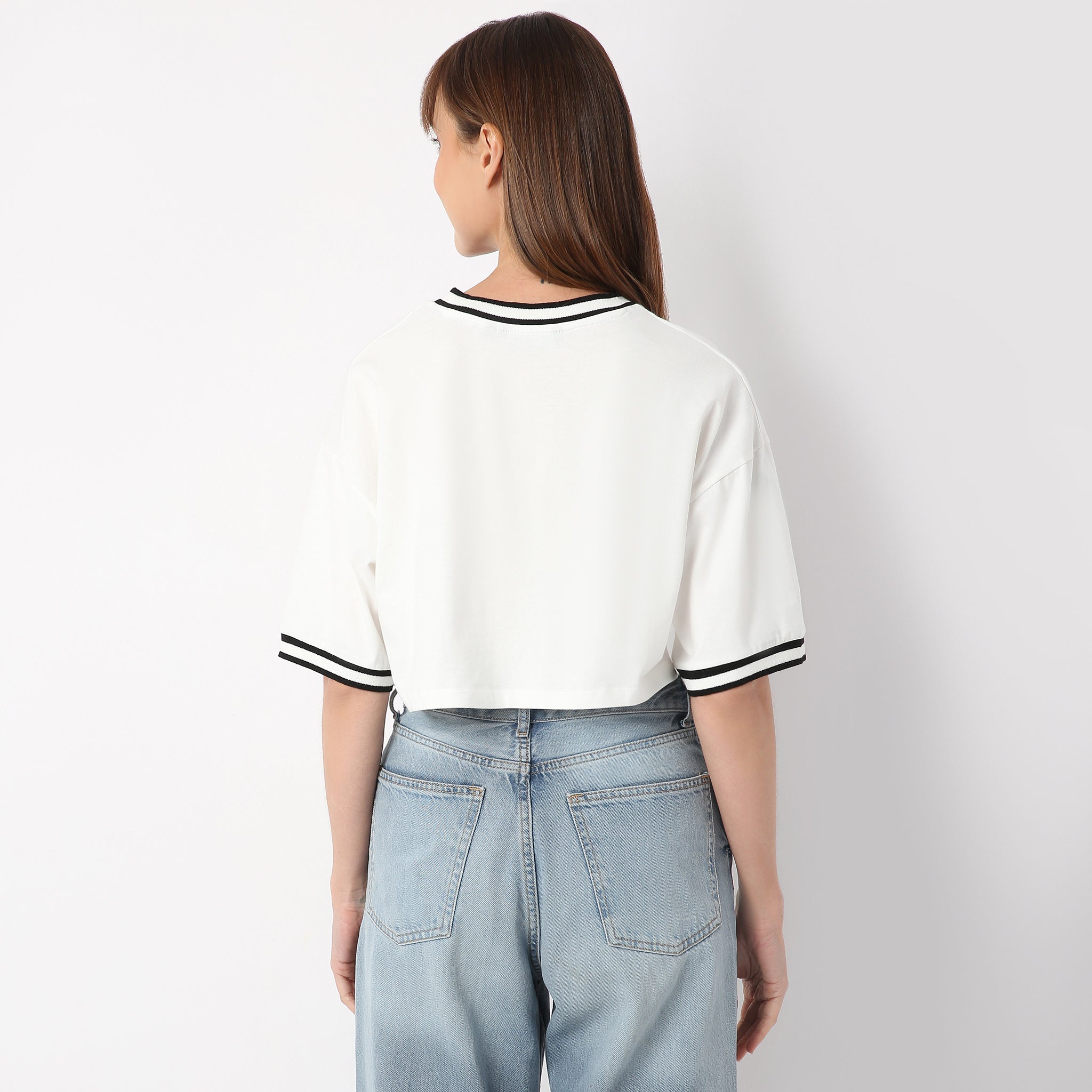 Experience the ultimate in comfort and style with our Boxy Fit Graphic V-Neck T-Shirt. Crafted from 100% cotton, this tee offers a soft touch against your skin, making it perfect for all-day wear. The cropped length and graphic pattern add a trendy twist, ensuring you stand out in any crowd. Whether you're heading to a casual brunch or a relaxed day out, this t-shirt is your go-to choice for effortless chic.