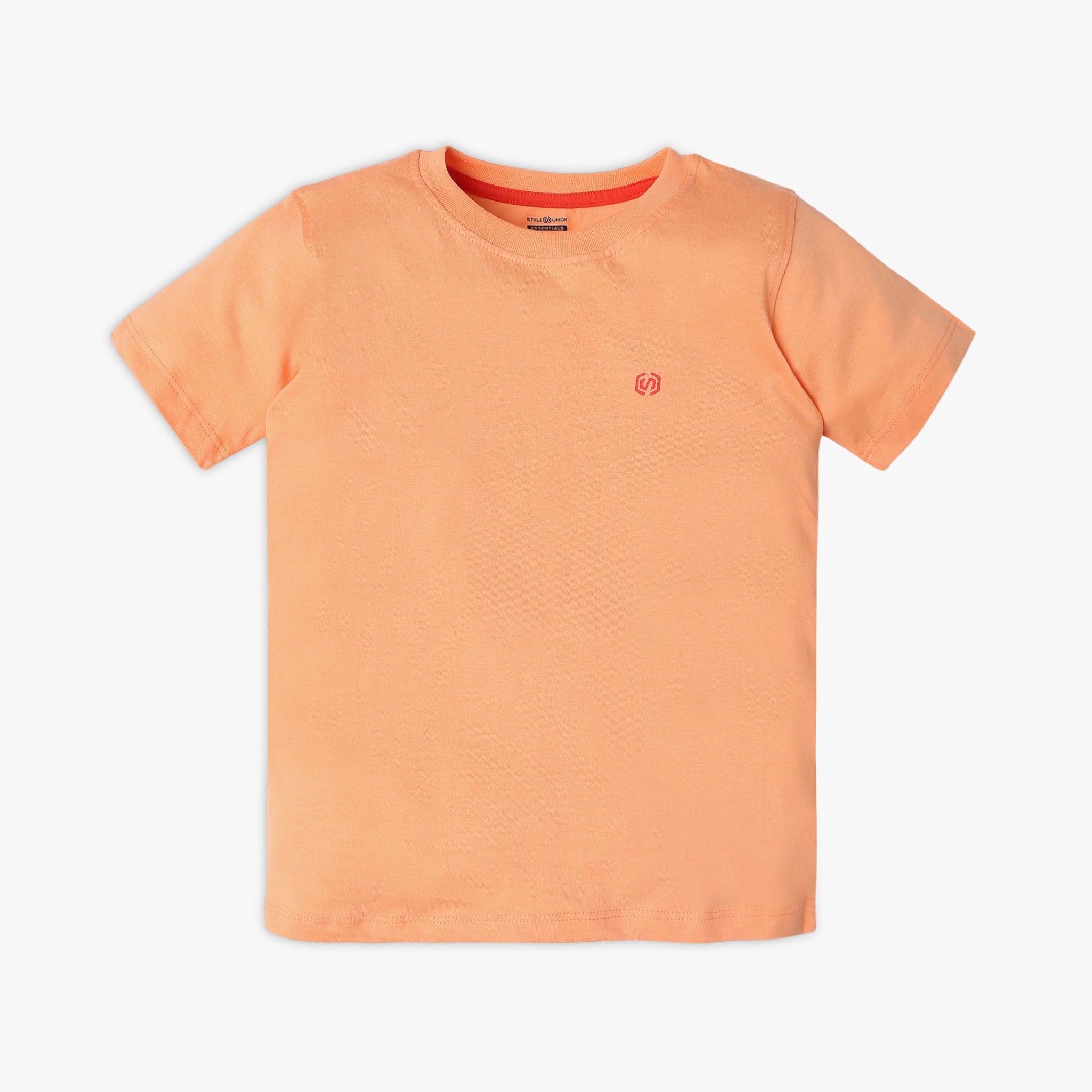 This solid pattern t-shirt has a crew neck and half sleeve. Made from cotton, your kid's feel comfortable wearing a product.